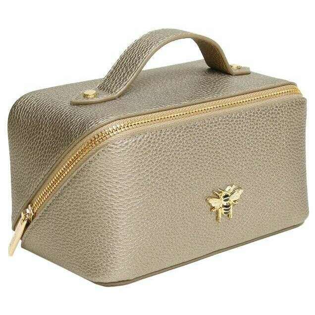 Ontwerper Alice Wheeler London heeft u deze 100% veganistische lederen tas voor dames gebracht met bronzen tonen. Het meet 9,5 cm (hoogte) x 18 cm (breedte) x 9,5 cm (diepte). Alle tassen komen compleet in Alice Wheeler London Packaging. De Alice Wheeler London Mini Luxury Train Case - Bronze is een mini -versie van de populaire treinthoes en is een stijlvol schattige manier om uw essentiële toiletartikelen, make -up of andere reisbenodigdheden te dragen. Binnen is volledig gevoerd en omvat interne zakken voor uw kleinere bits plus als een dubbele hoofdsectie, dus het is gemakkelijk om uw spullen te organiseren. Alles is stevig afdichtingen met zijn ritssluiting en is afgewerkt met de iconisch mooie bijen verfraaiing.