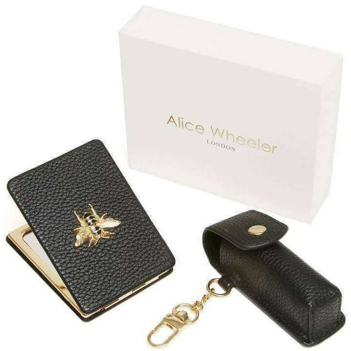Alice Wheeler London Langce Compact Mirror en Lipstick Holder Gift Set - Black
