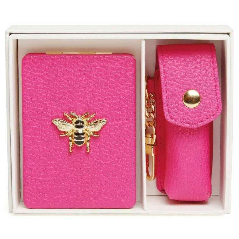Alice Wheeler London Langce Compact Mirror en Lipstick Holder Gift Set - Hot Pink