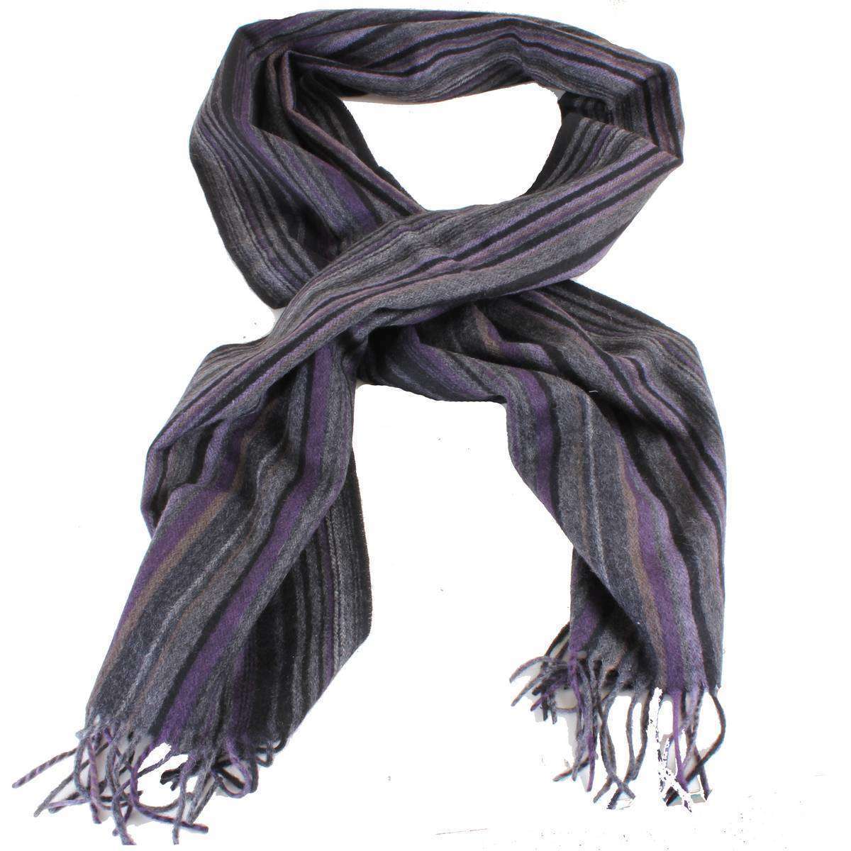 Bassin en bruine stefano gestreepte wollen sjaal - paars/grijs