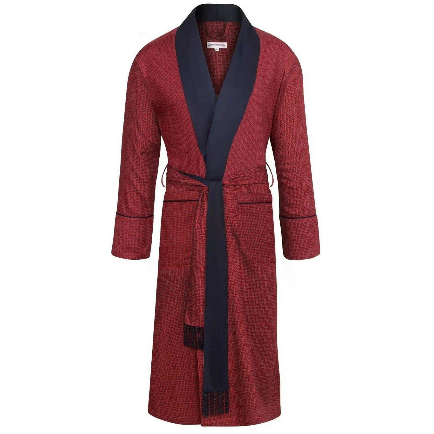 Deze Bourgondische Labyrinth Heren Cambridge Lichtgewicht kleedjurk is gemaakt van 100% katoen, 200 gsm -gewicht. Ook is de Bourgondische labyrintkap jurk ontworpen in een uniek patroon, het wordt aanbevolen om een ​​katoencyclus van 40 graden te wassen om deze kamerjas in goede staat te houden. Alle kleedjurken worden compleet geleverd met Bown of London Dust Bag. De Bown of London Cambridge lichtgewicht kleedjurk - Bourgondisch labyrint is prachtig gemaakt van de zachtste stof om u optimaal comfort te geven bij het ontspannen. De satijnen sjaalkraag en gevoerde manchetten contrasteren elegant, zodat u zeker in stijl zult loungen. Met twee voorzakken en een verstelbare riem, comfort en bruikbaarheid is van het grootste belang. Luxueus stijlvol, dit gewaad is perfect voor elke heer.