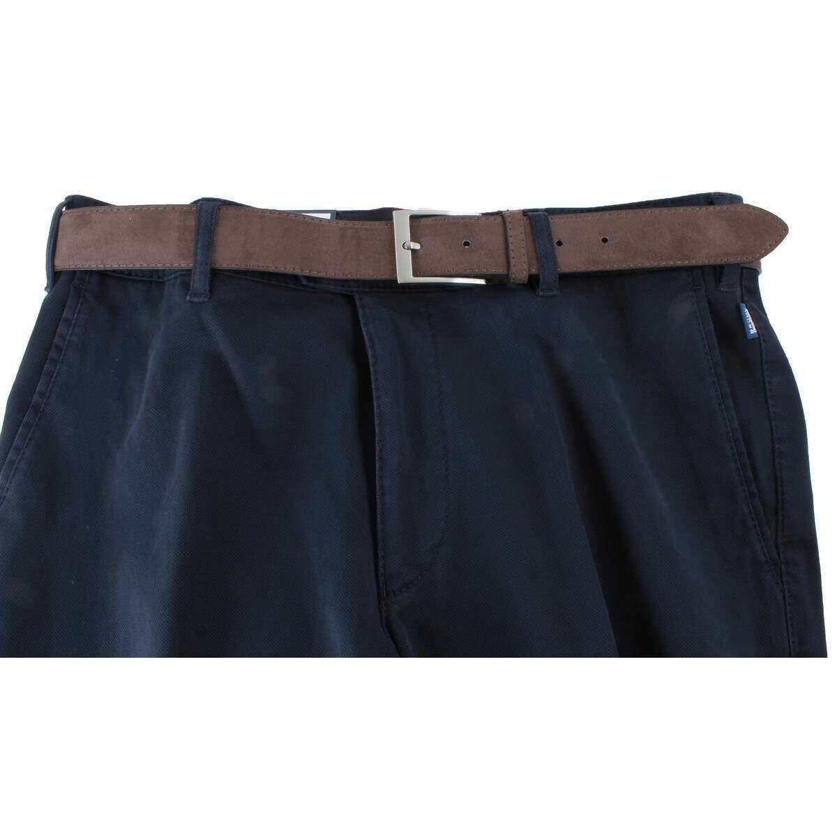 Deze parma b mover perzikkleurige herenchino met hoge stretch is gemaakt van 98% katoen en 2% elastaan, uitgevoerd in een marineblauwe kleur en is van het merk BRUHL. Ook de marineblauwe broek is ontworpen in een effen patroon. Het wordt aanbevolen om op 40 graden te wassen om deze broek in goede staat te houden. Alle broeken worden compleet geleverd met bruhl-tags. De BRUHL Parma B Mover Peached chino met hoge stretch - Marine Navy is ontworpen voor comfort, flexibiliteit en stijl. Deze chino is gemaakt van een zeer rekbare stof en zorgt ervoor dat je de hele dag moeiteloos kunt bewegen. De elastische tailleband zorgt voor een comfortabele en aanpasbare pasvorm, terwijl de perzikkleurige structuur de stof een zachte en verfijnde afwerking geeft voor een premium gevoel. Deze chino heeft twee kwartzakken voor gemakkelijke toegang en twee paneelzakken met knoopsluiting voor veilige opslag. Met acht riemlussen bieden ze een stabiele grip voor je riem, en de bodembreedte van 16 inch zorgt voor een modern, getailleerd silhouet. Deze chino is perfect voor smart-casual gelegenheden en combineert functionaliteit met elegantie, waardoor hij een essentiële aanvulling is op elke garderobe.