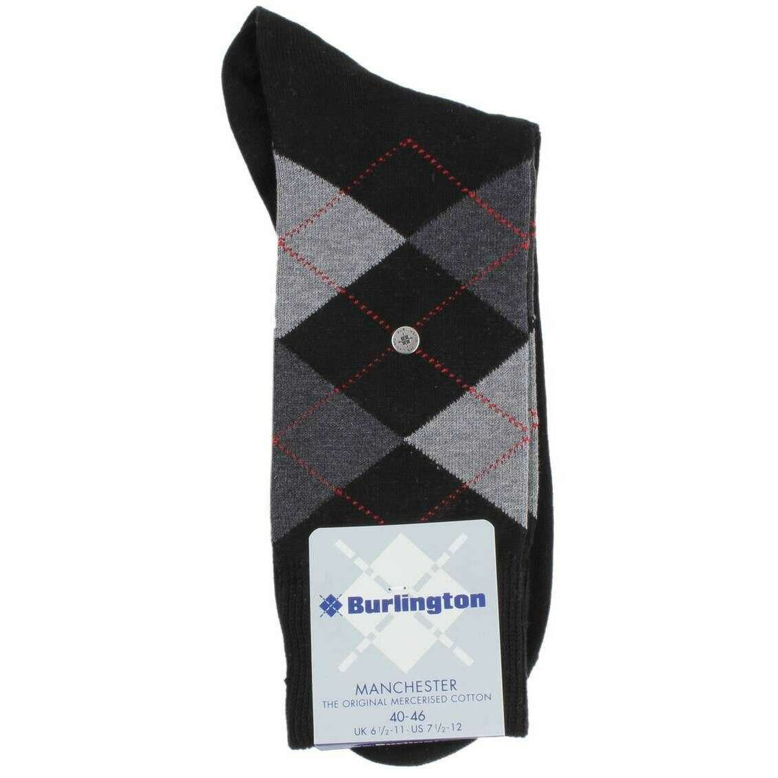 Burlington Argyle Mercerised Cotton Socks - Black/Gray