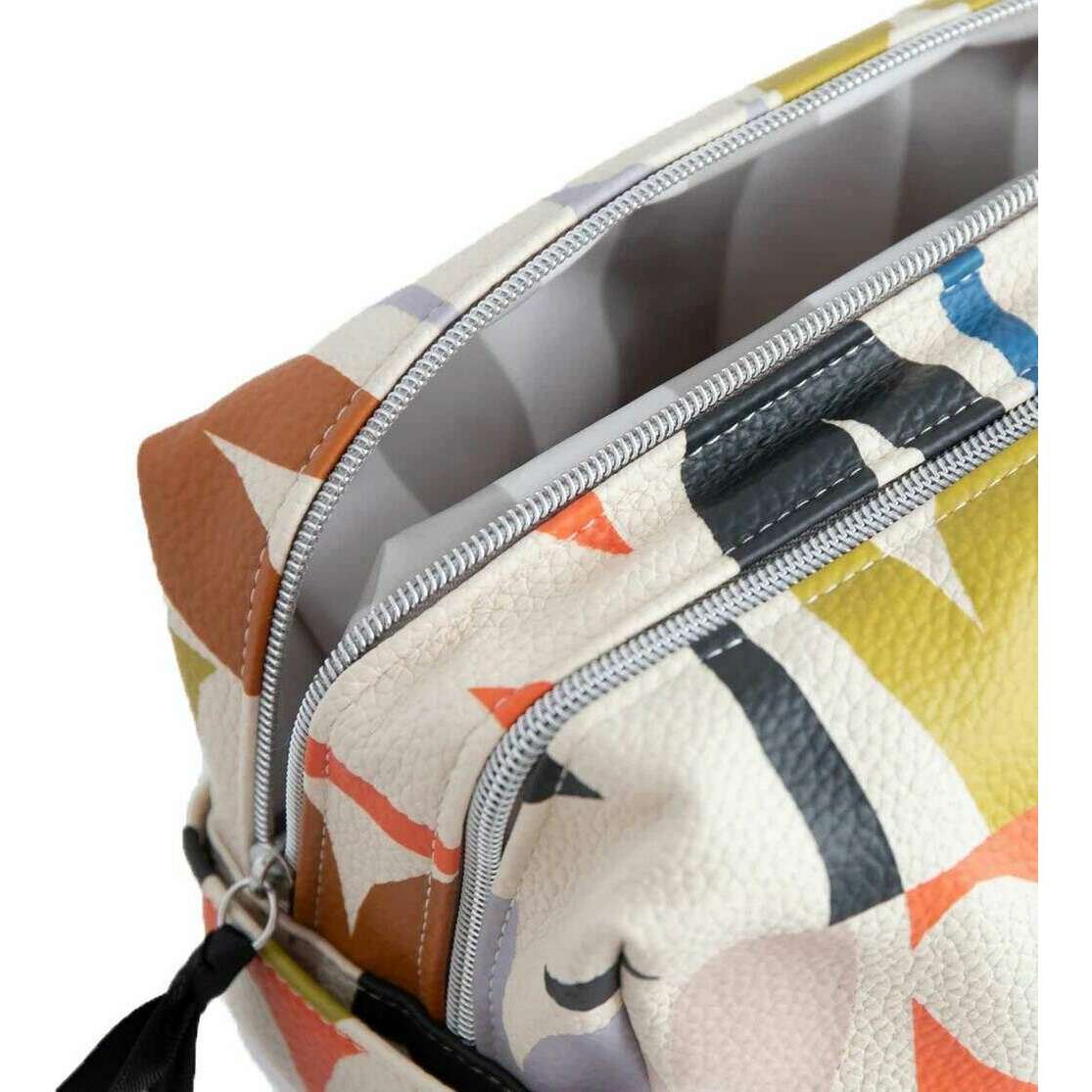 • Dubbele ritssluiting, 2 secties, handgreep, zilveren hardware, grosgrain-trekkers