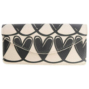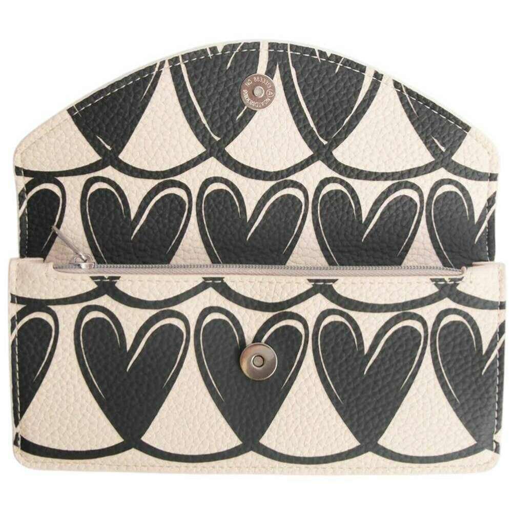 Deze zwart/crème damesportemonnee met mono-linked hartjes en lange envelop, gemaakt van 100% polyurethaan, is ontworpen door ontwerpster Caroline Gardner. De afmetingen zijn 10 cm (hoogte) x 19 cm (breedte). Alle portemonnees worden compleet geleverd met Caroline Gardner-tags. De Caroline Gardner Mono Linked Hearts Long Envelope Purse - Zwart/Crème is afgewerkt met de mono-linked hartenprint van het merk. Het beschikt over zes kaartsleuven, een speciaal muntenvak en wordt netjes afgesloten met een drukknoopsluiting.