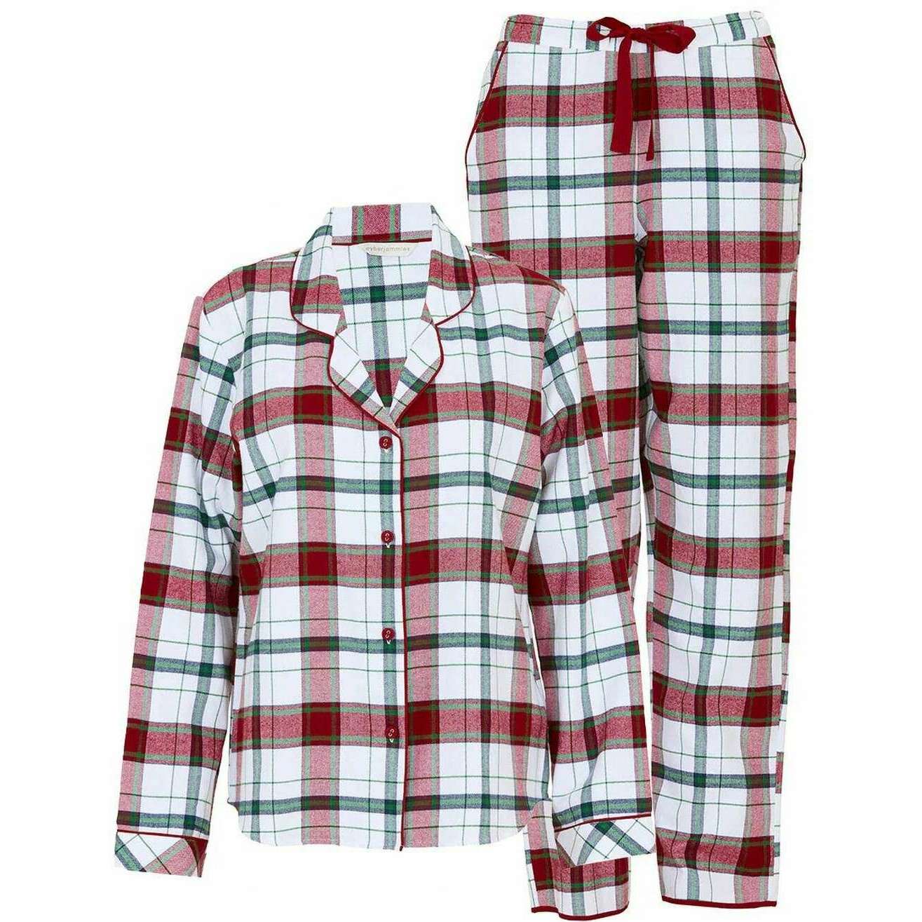 Deze geborstelde geruite damespyjamaset van het merk Cyberjammies is gemaakt van 100% katoen en is uitgevoerd in het rood. Ook de rood/wit/groene pyjama is ontworpen in een ruitpatroon. Het wordt aanbevolen om binnenstebuiten in de machine te wassen, niet te laten weken, met gelijke kleuren te wassen om deze pyjama in goede staat te houden. Alle pyjama's worden compleet geleverd met cyberjammies-tags. De Cyberjammies Blaze geborstelde geruite pyjamaset - rood/wit/groen is het soort paar dat je altijd, dag en nacht, wilt dragen terwijl je in het comfort van je gezellige huis zit. Het prachtige, geruite ontwerp biedt een klassiek karakter, terwijl het prachtige katoenmateriaal luxueus aanvoelt op je huid. Het overhemd met knoopsluiting geeft je een tijdloze stijl, terwijl het broekje is voorzien van een trekkoord voor een comfortabele pasvorm.