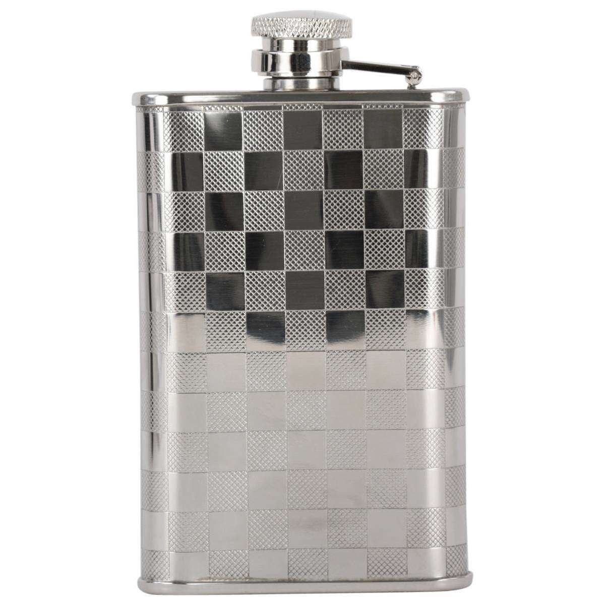 David Van Hagen 3,5 oz roestvrijstalen geruite heupkolf met gravure ruimte - zilver