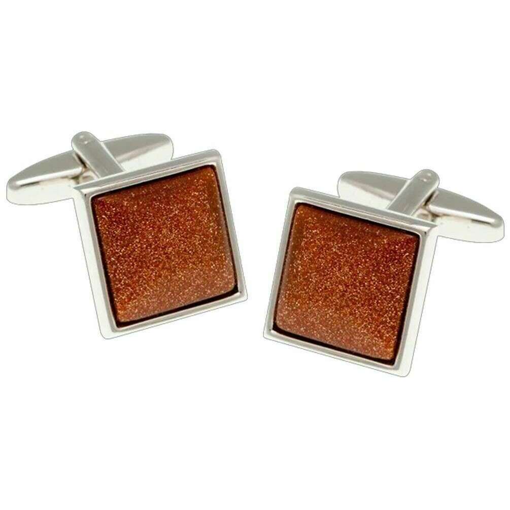 David Van Hagen Goldstone vierkante manchetknopen - bruin/zilver