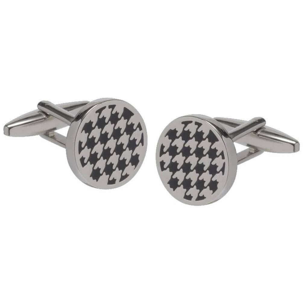 David Van Hagen Houndstooth-manchetknopen - Zwart/Zilver