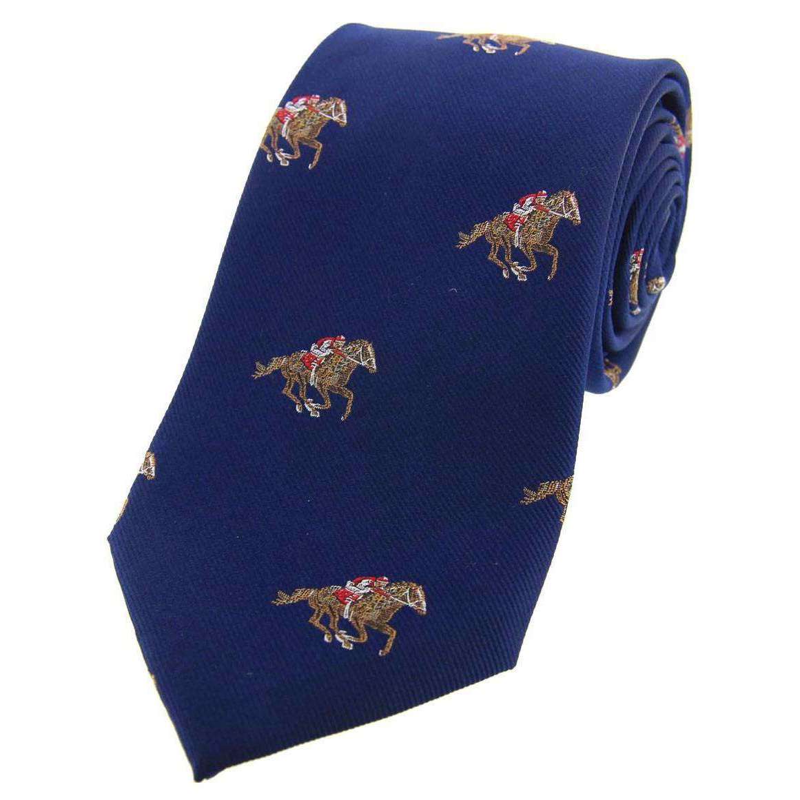 David Van Hagen Jockeys en paarden geweven land zijden stropdas - marine