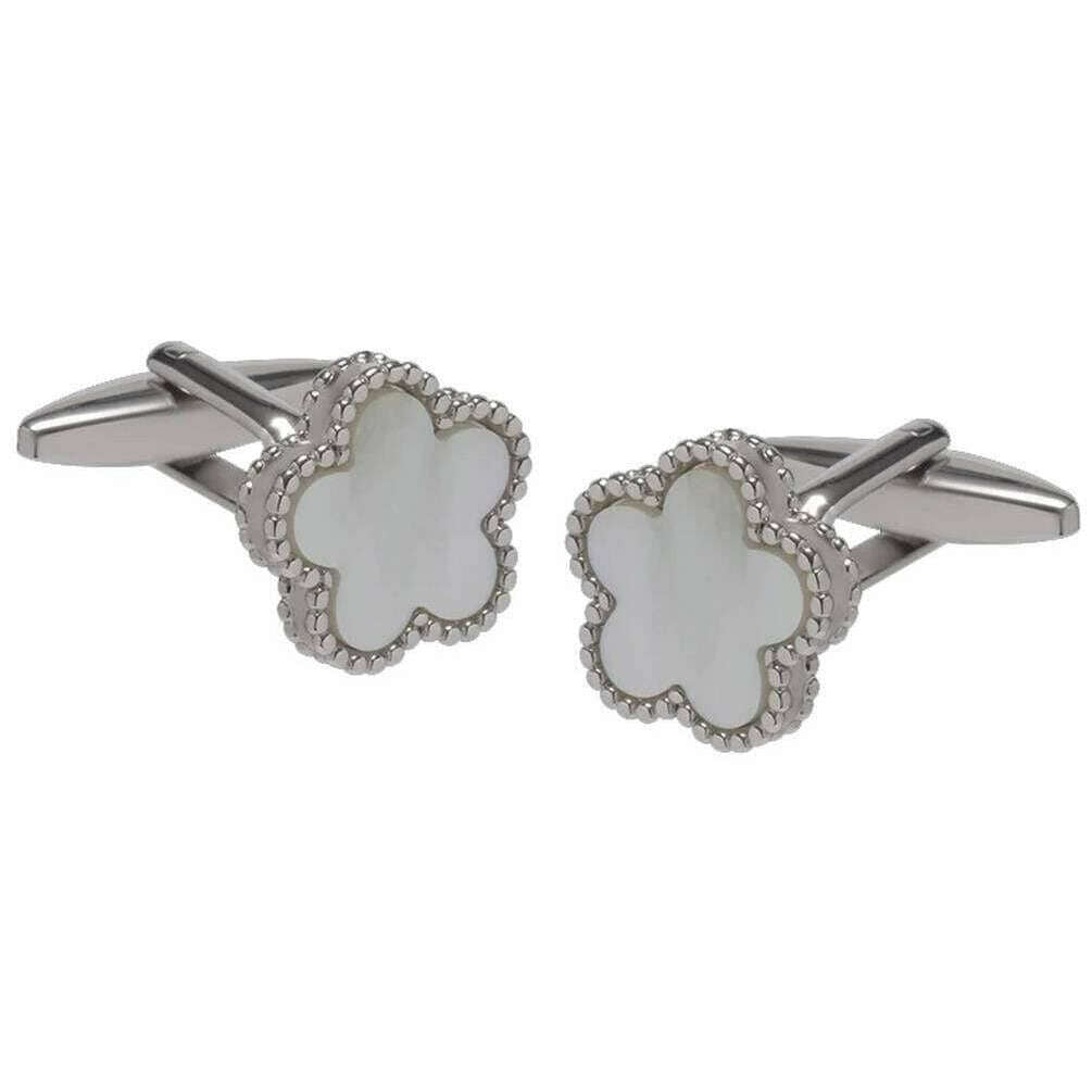 David Van Hagen Parelmoer Bloem Manchetknopen - Wit/Zilver