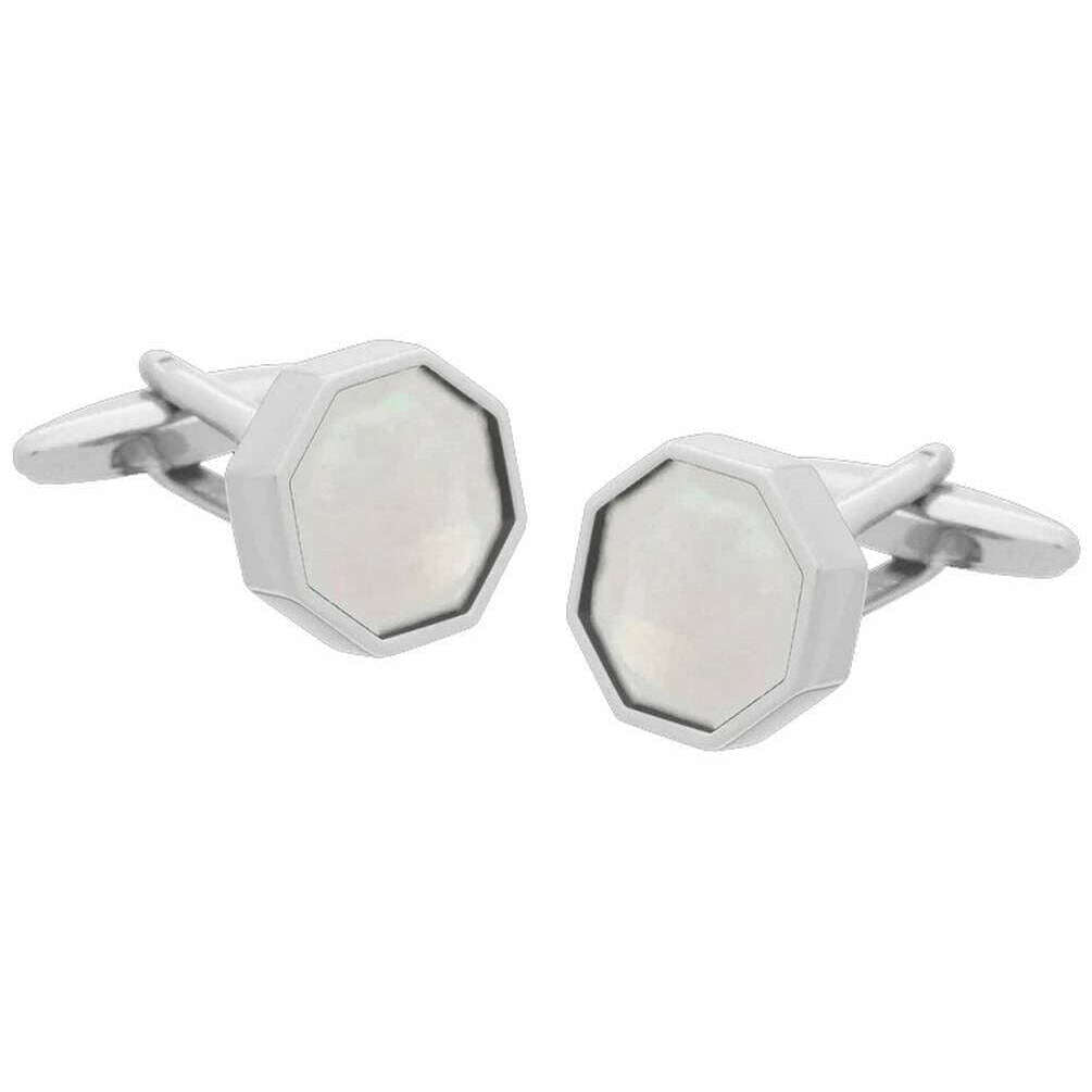David Van Hagen Parelmoer Achthoekige Manchetknopen - Wit/Zilver