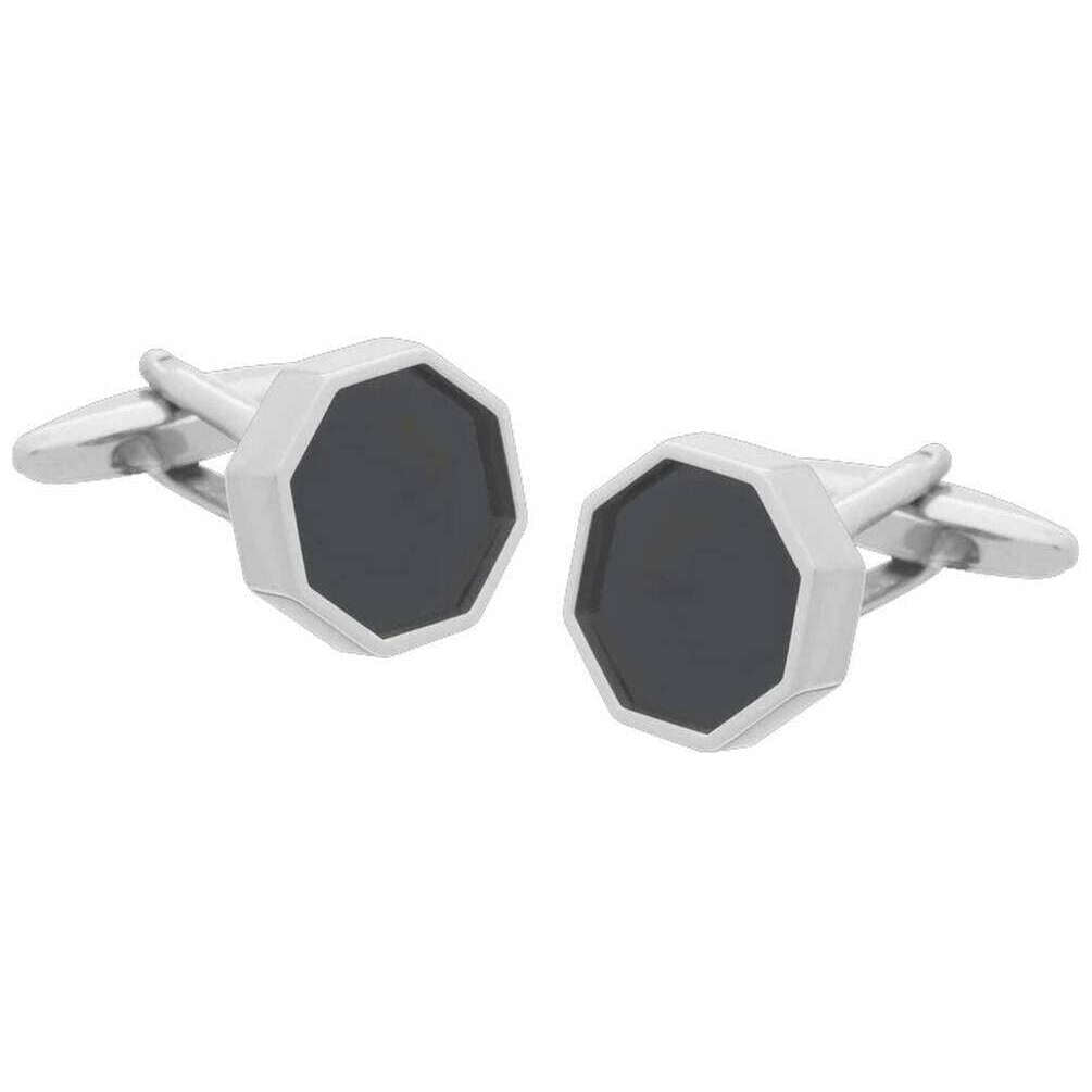 David Van Hagen Onyx achthoekige manchetknopen - zwart/zilver