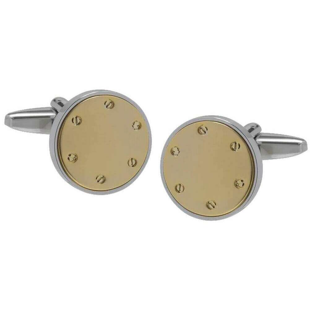 Maak kennis met deze herenmanchetknopen met klinknagels van David Van Hagen. Ze zijn vervaardigd uit onedel metaal in een zilver/gouden kleur. Alle manchetknopen worden compleet geleverd met een David van hagen-verpakking. De David Van Hagen klinknagelmanchetknopen - zilver/goud zijn voorzien van een metalen basisplaat met een goudgeborstelde voorkant en micro-klinknagelaccenten, waardoor ze het perfecte accessoire zijn voor elke formele outfit.