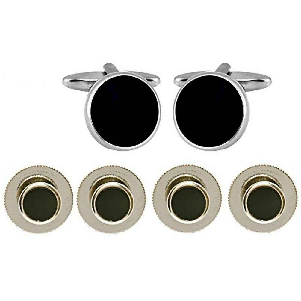 David Van Hagen ronde manchetknopen en jurkknopenset - zwart/zilver