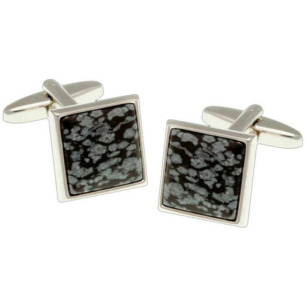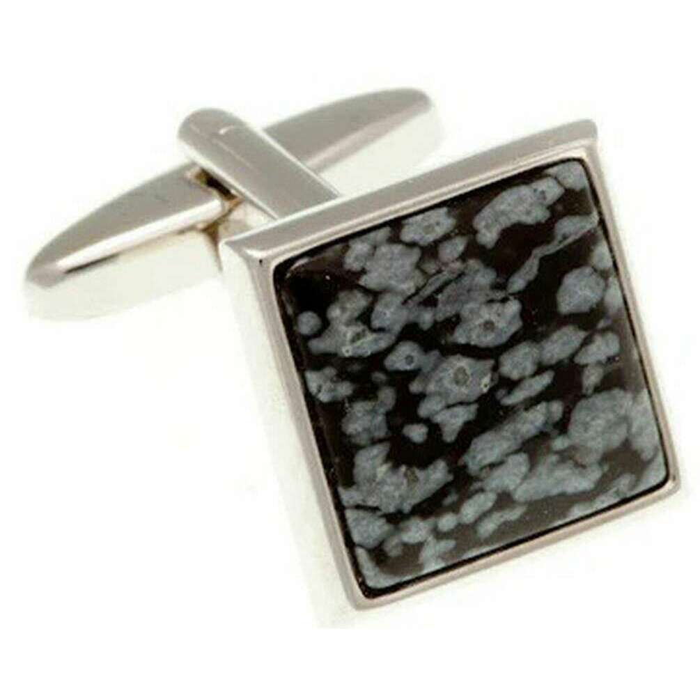 • Cabochon halfedelstenen sneeuwvloksteen, gepolijste randen, standaard manchetknoop-bascule