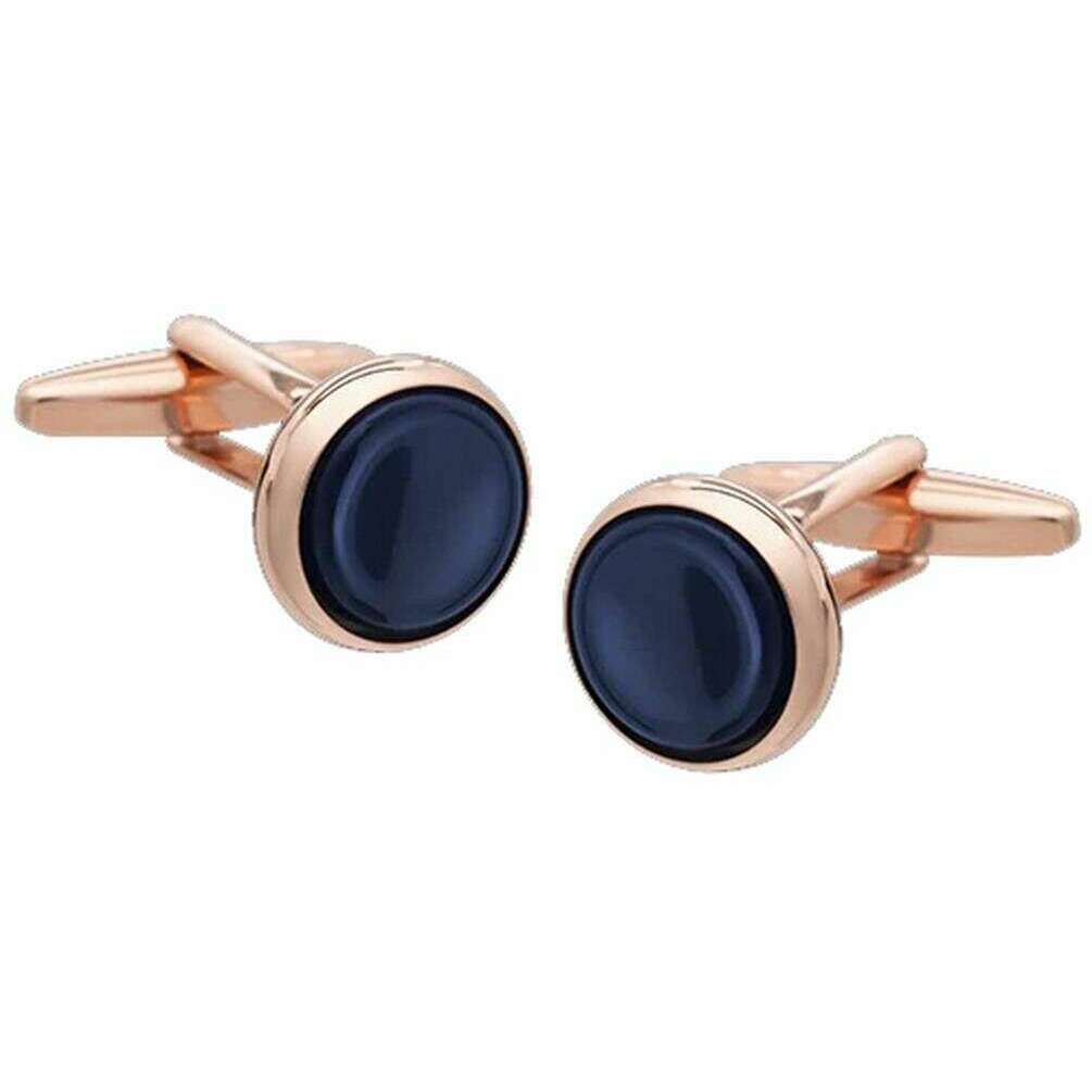 • Bascule van standaard manchetknopen, diameter van 14 mm, concave dip-sodalietsteen, natuurlijke halfedelstenen, roségouden behuizing