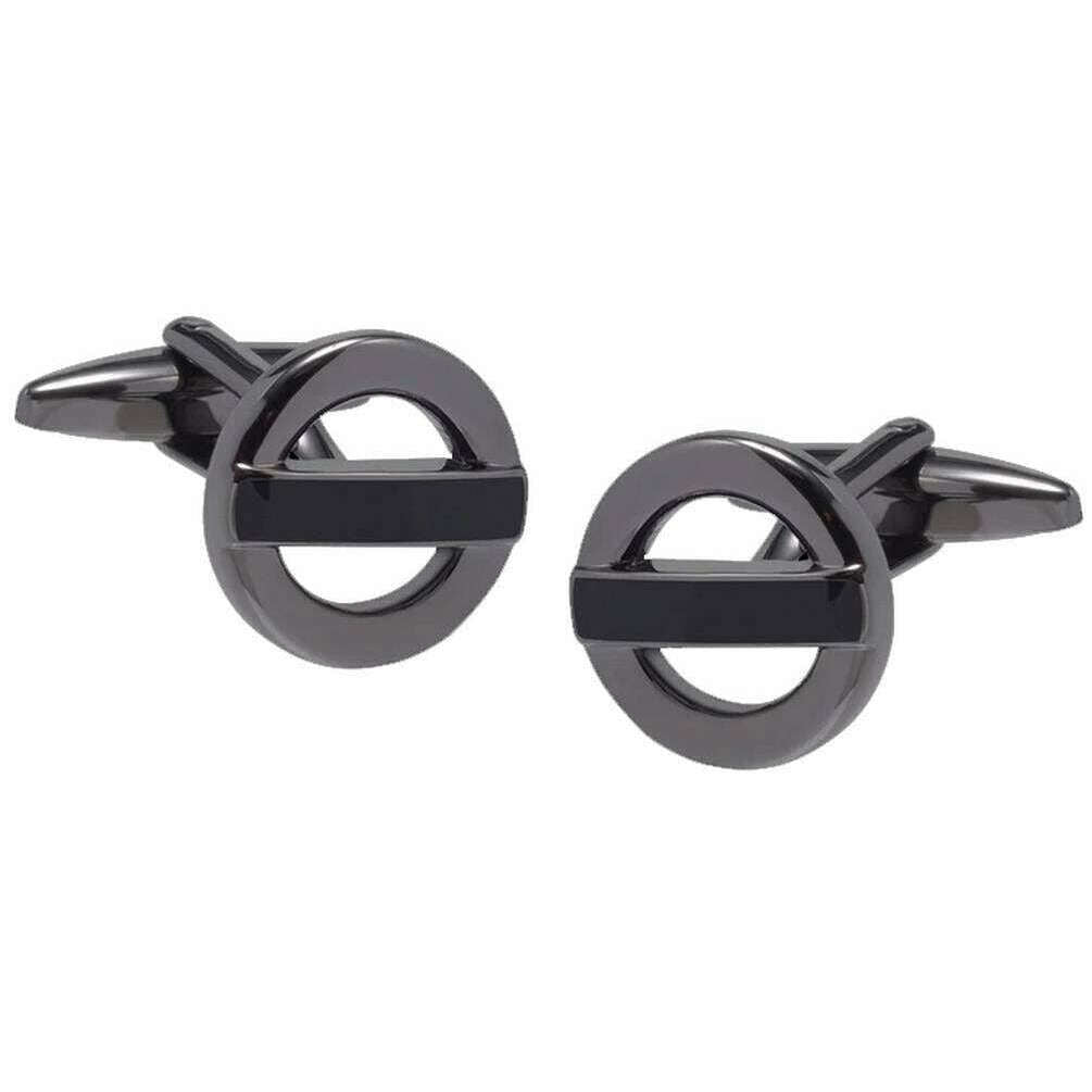 • Geïnspireerd door London Underground Sign, Zwart Emaille Bar, Gepolijste Gunmetal Circle, Standaard Manchetknopen Bascule