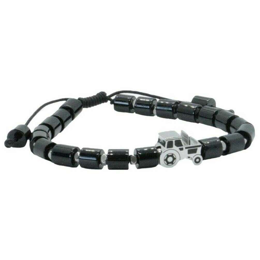 David Van Hagen Tractor Bead Agaat Armband - Zwart
