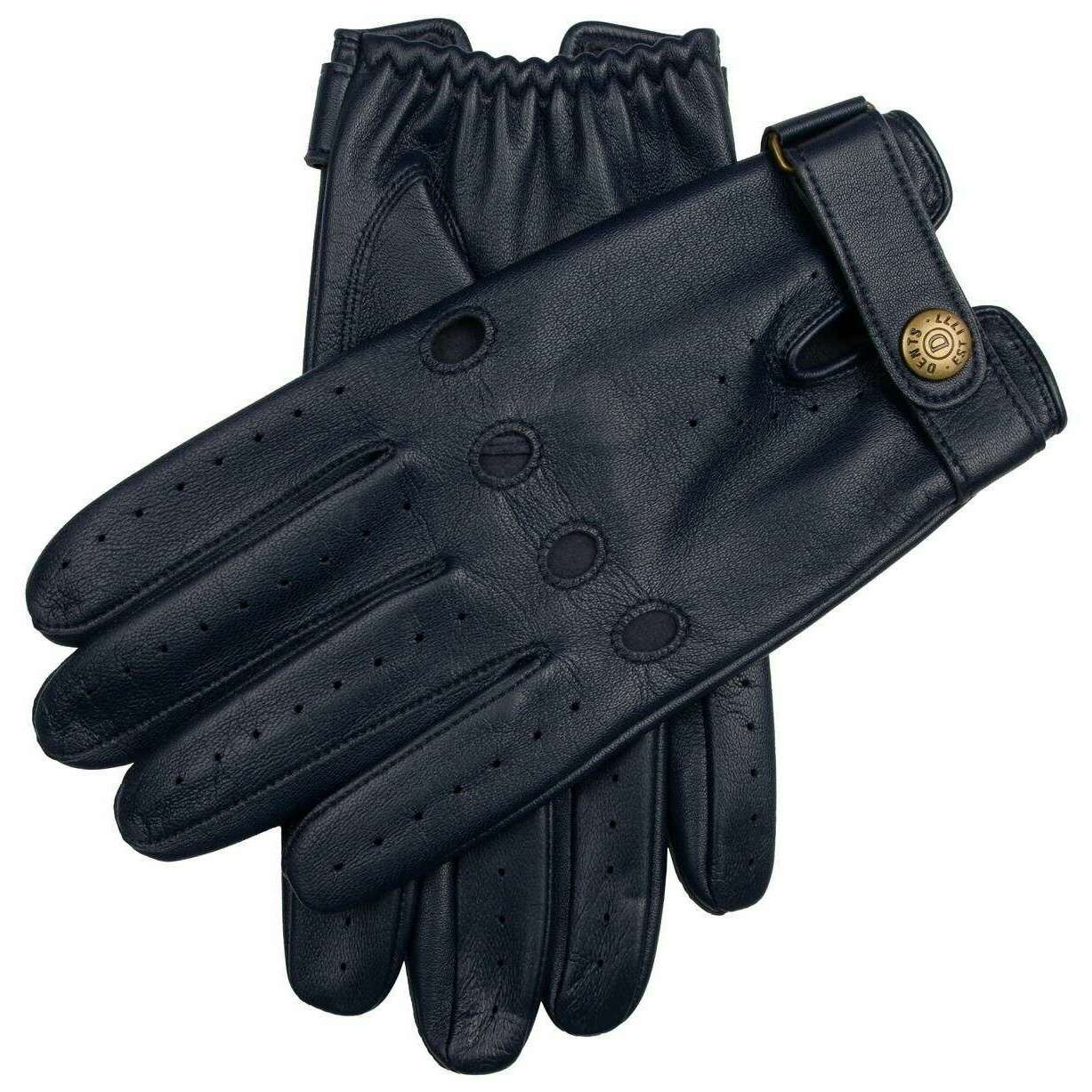Deze brooklands leren autohandschoenen van Dents zijn gemaakt van 100% marineblauw schapenleer en zijn perfect voor mannen en een must-have. Ook de marineblauwe handschoenen zijn ontworpen in een effen patroon. Alle handschoenen worden compleet geleverd met deuklabels. De Dents Brooklands leren autohandschoenen - Navy bieden een twist aan de gebruikelijke autohandschoenen, omdat ze geen uitgesneden achterkant hebben, waardoor ze een unieke afwerking hebben. De handschoenen zijn voorzien van ingewikkelde details zoals geperforeerde gaten in de vingers en handpalmen, knokkelgaten en stiksels in de binnennaden voor een strakke afwerking. Het heeft een centraal sluitende polsband met elastische polsen en een Dents-bevestigingsknop om de drager een veilige en comfortabele pasvorm te geven.