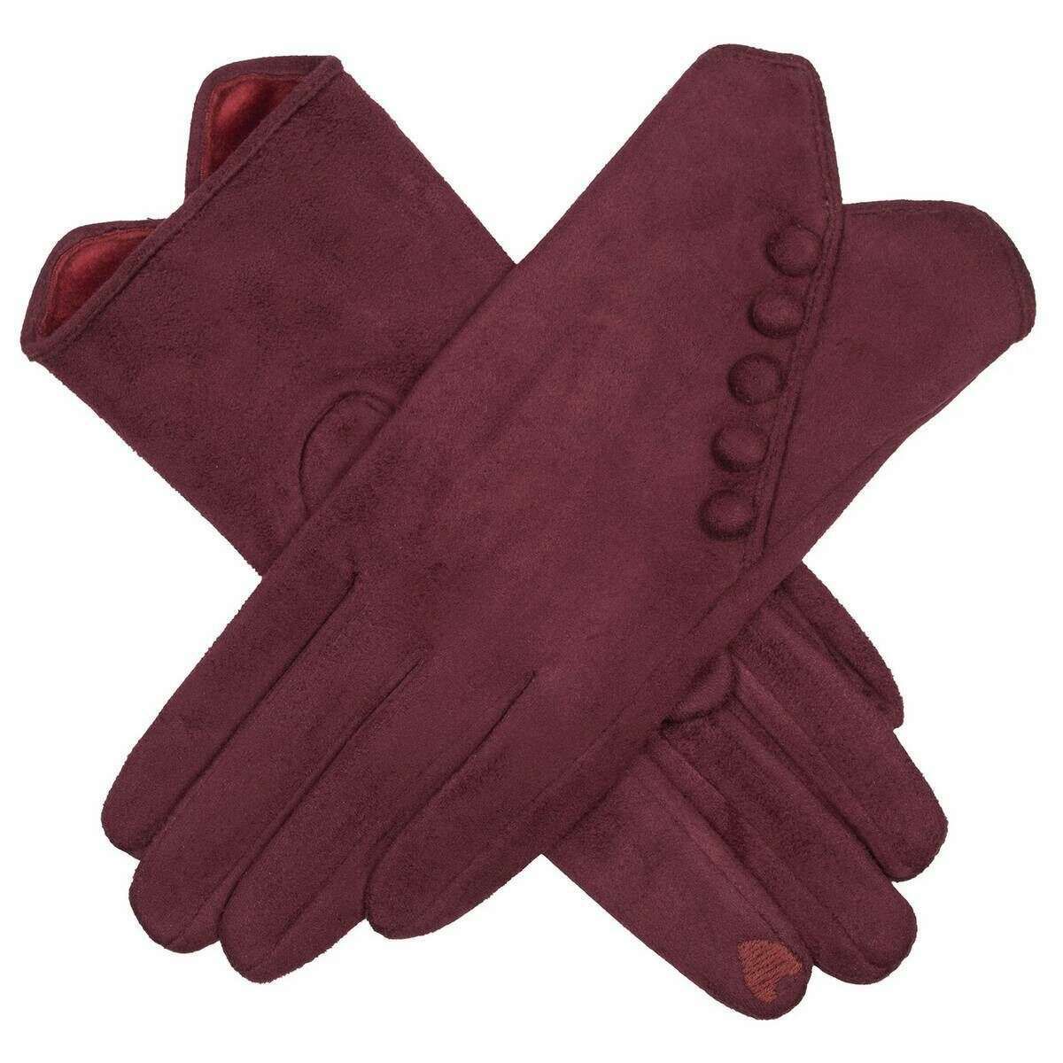 Deuken knoopte faux suede handschoenen - Damson Bourgondië