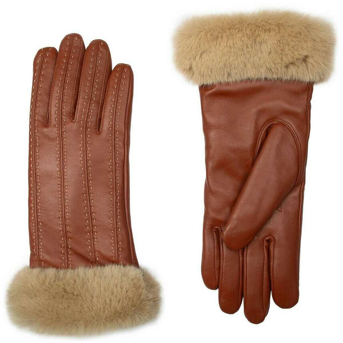 Deuken Cassie Contrast Stitching lederen handschoenen - Cognac Tan/Natural Beige