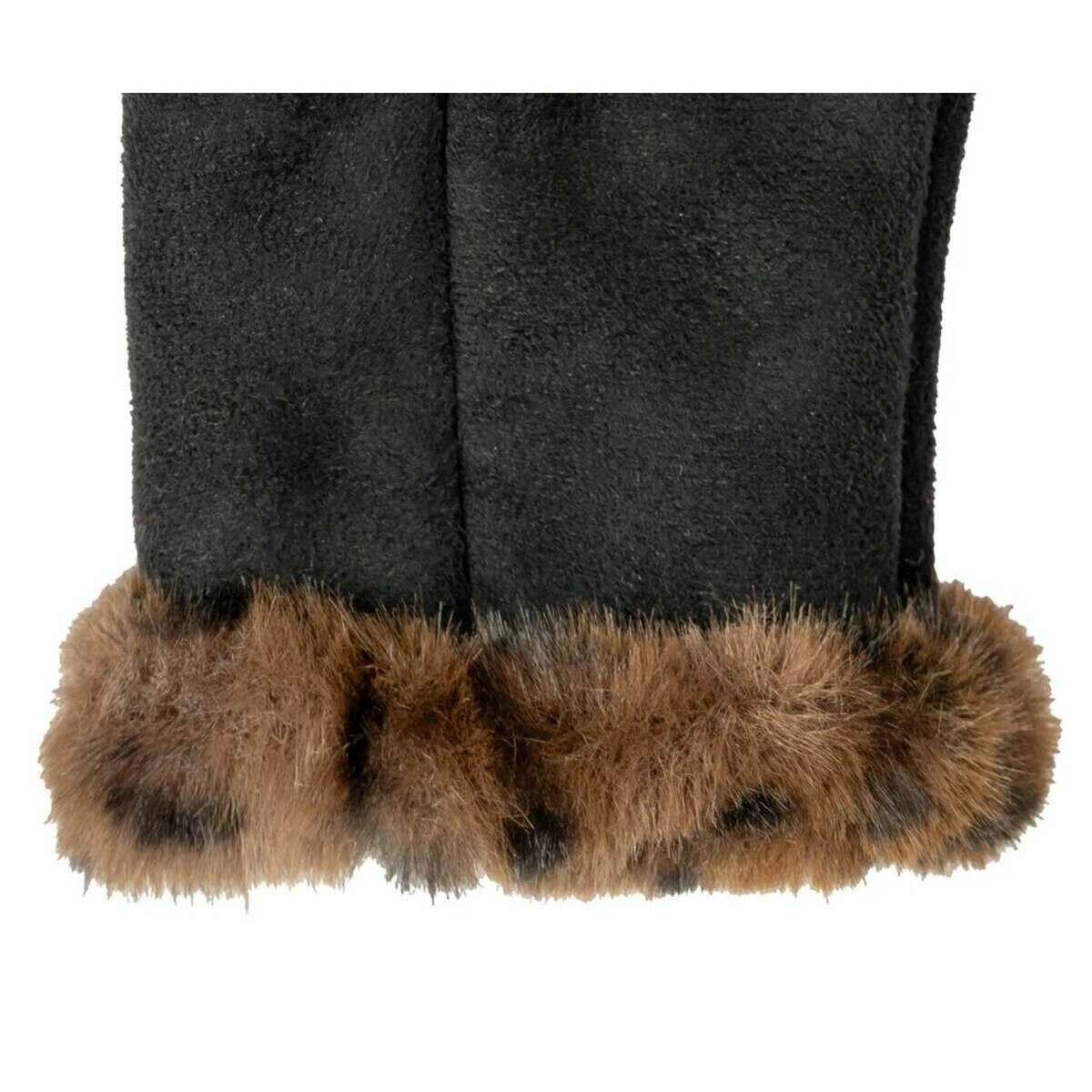 Dents fingerless faux suede wanten - dierenbruin/zwart