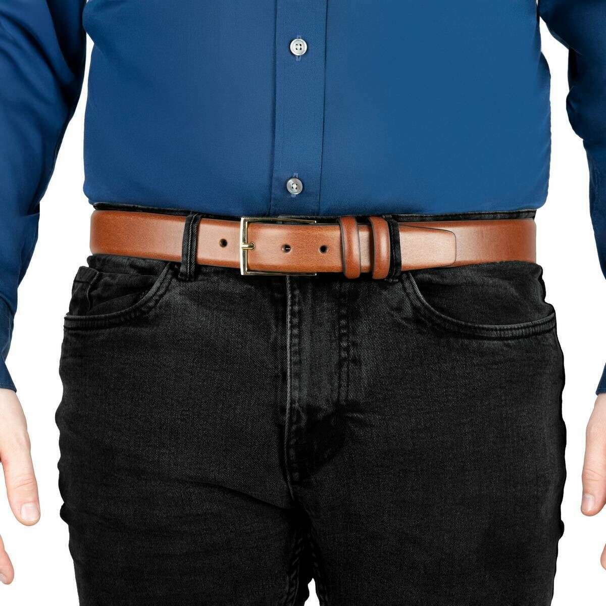 • Afgeronde randen, leren voering, vierkante gesp, dubbele lederen houder, trapeziumvormige riemtip, vijf gaten, 3,5 cm breed