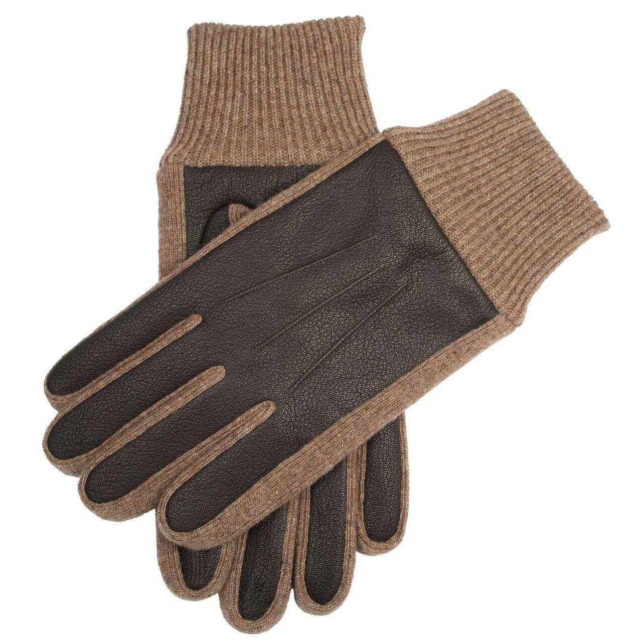 Dents Harrogate leren handschoenen met gebreide manchetten - bruin