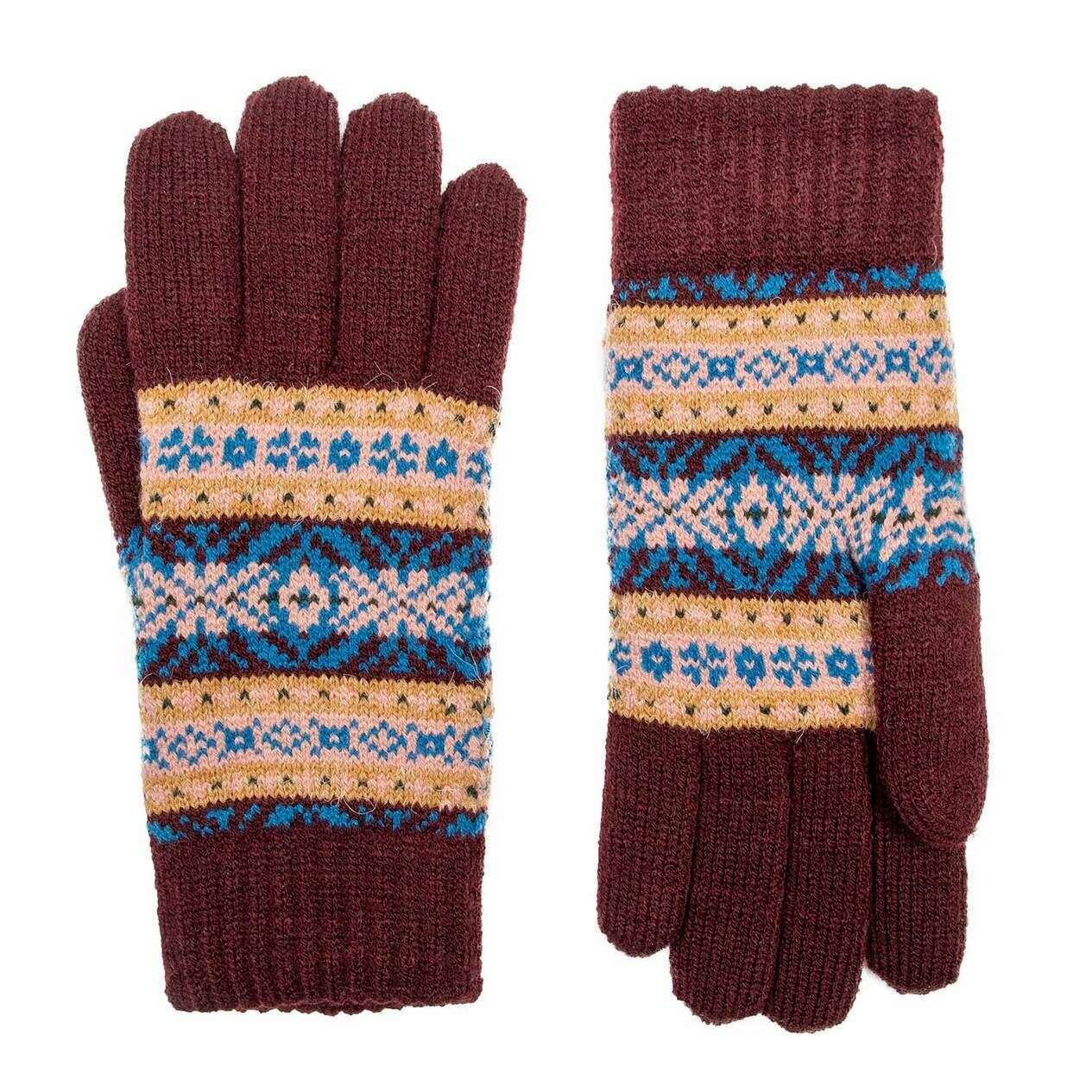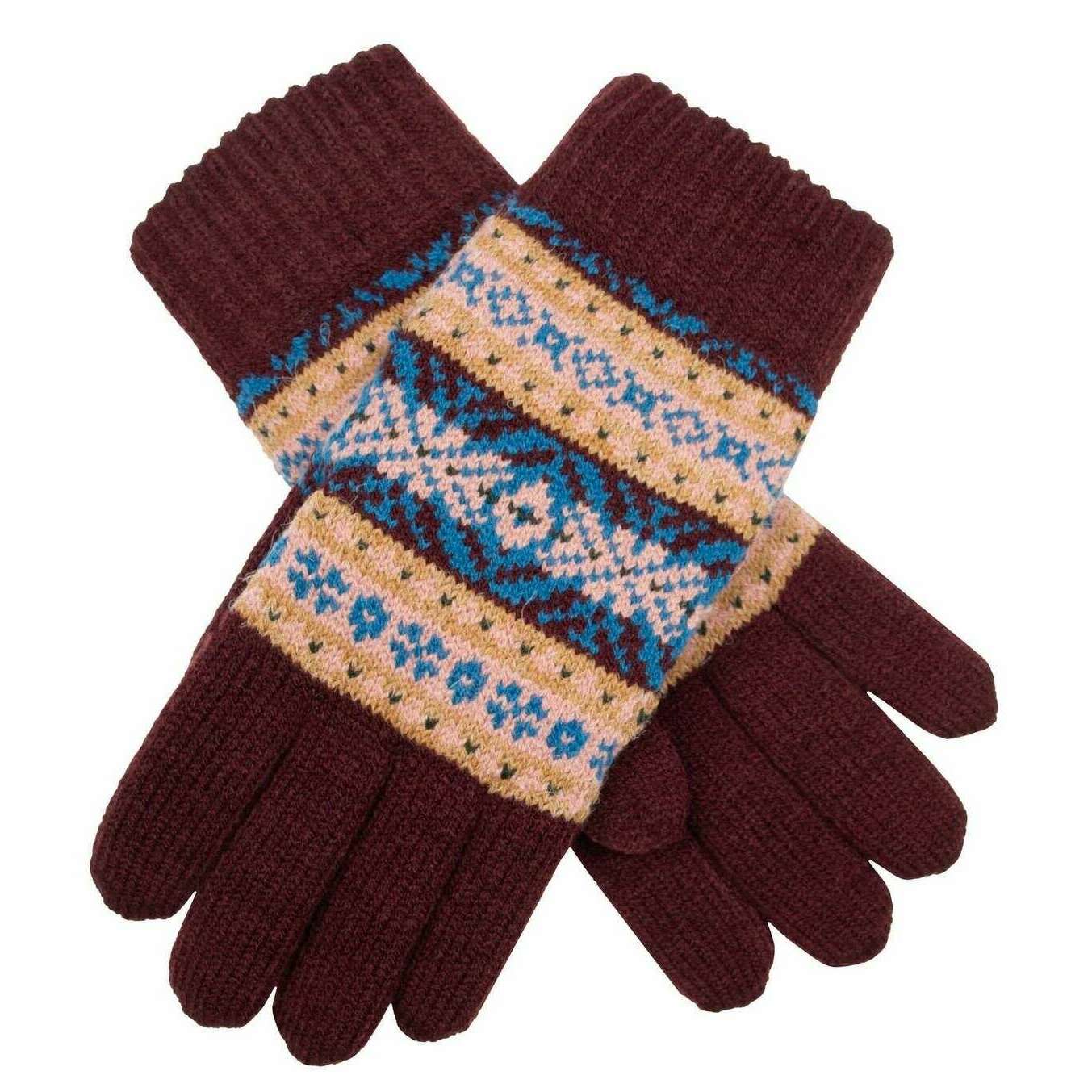 Deuken Jacquard Fair Isle Knitted Gloves - Damson Bourgondië