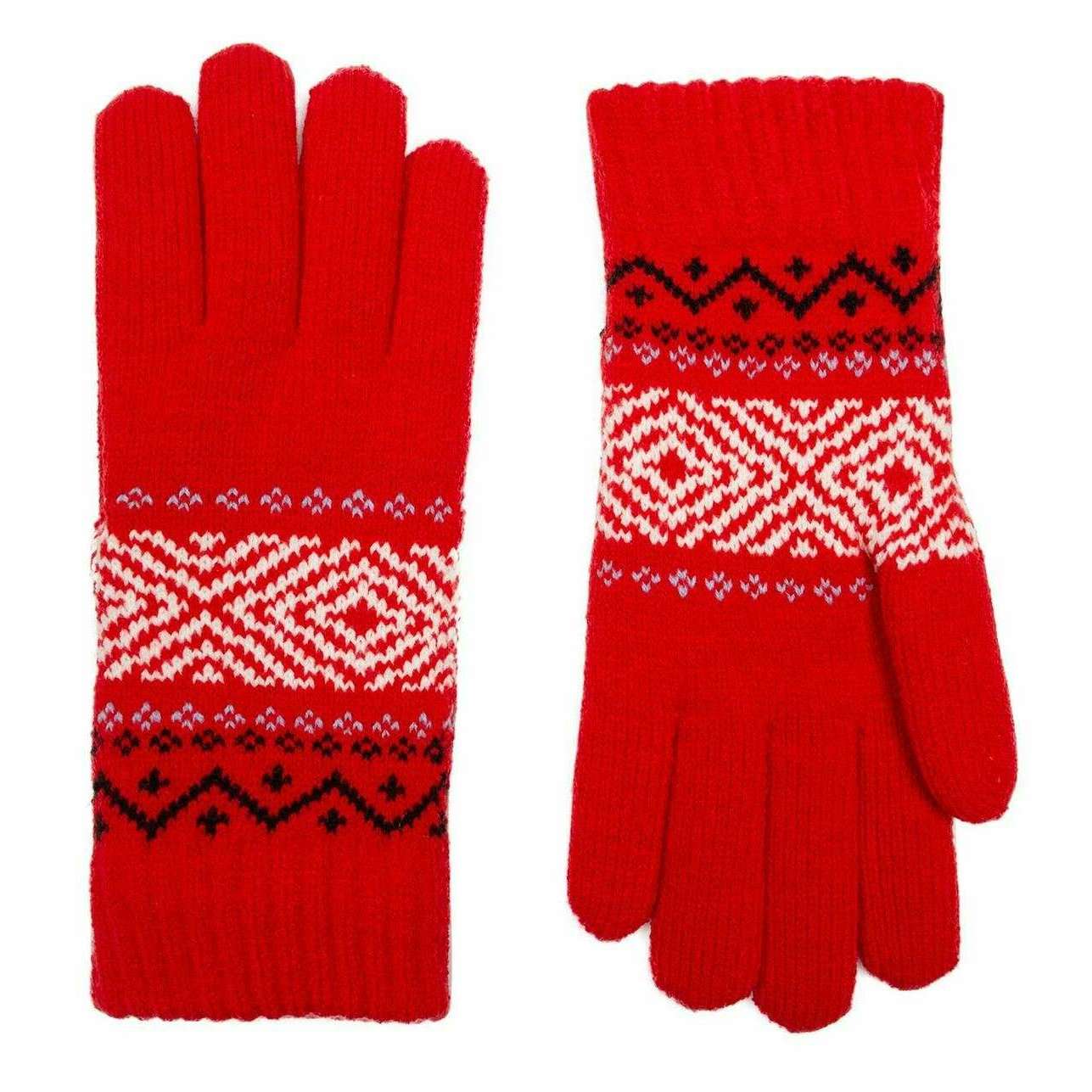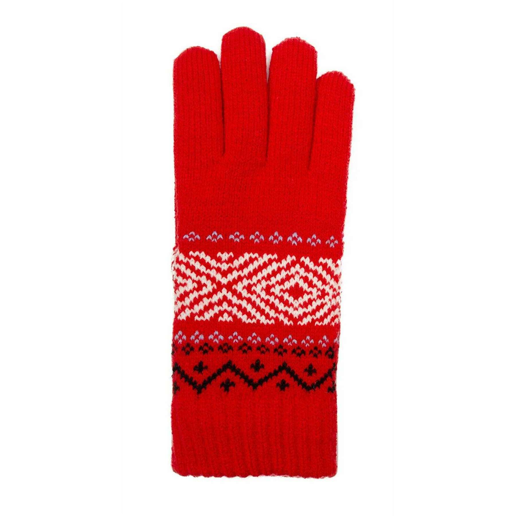 Deuken jacquard geometrische gebreide handschoenen - bessenrood