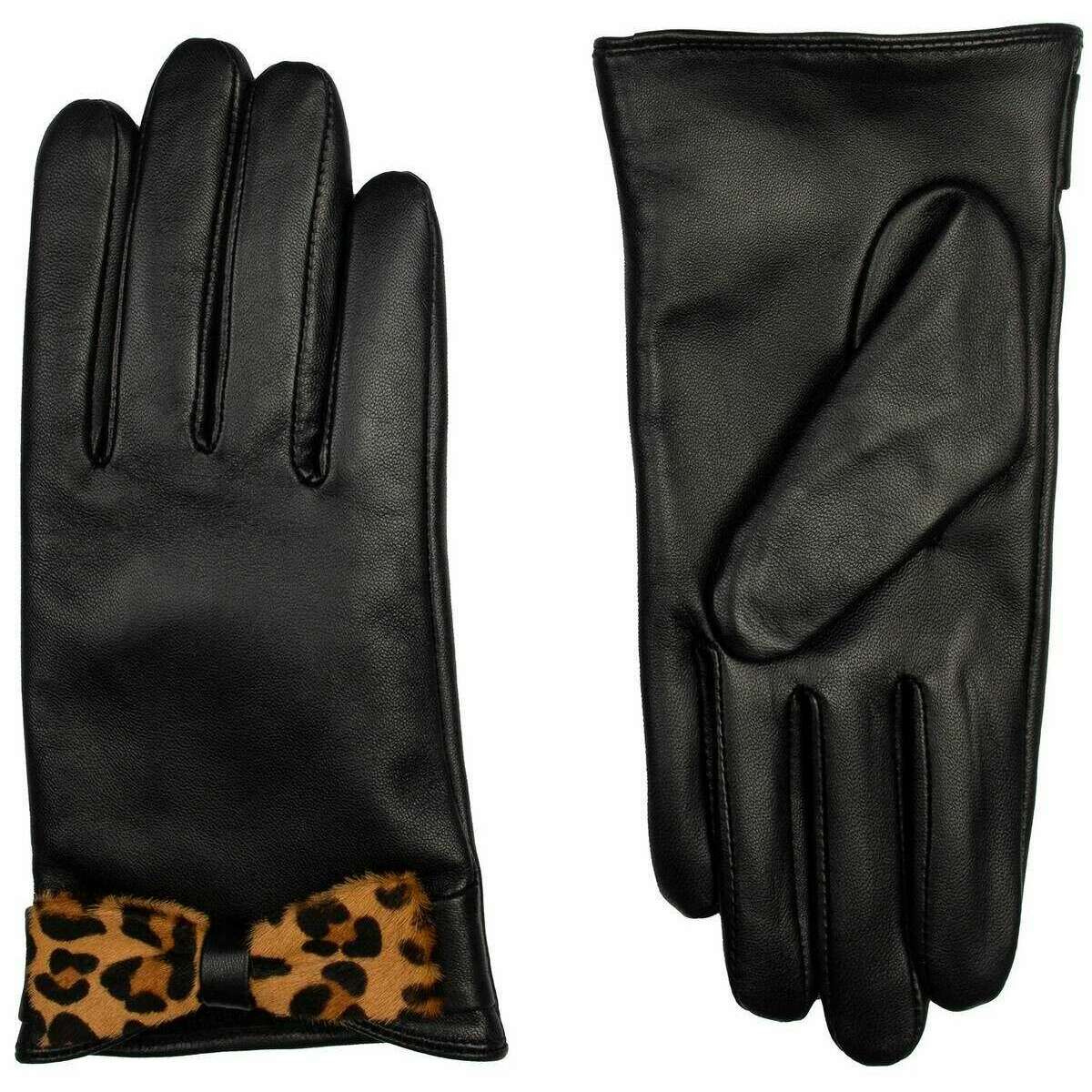 Dents Laurie Bow Leren Handschoenen - Luipaard/Zwart