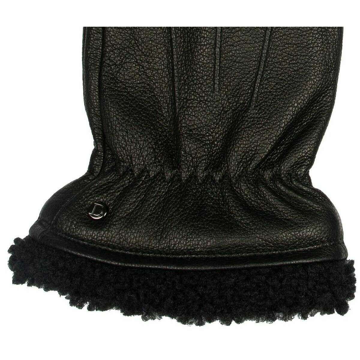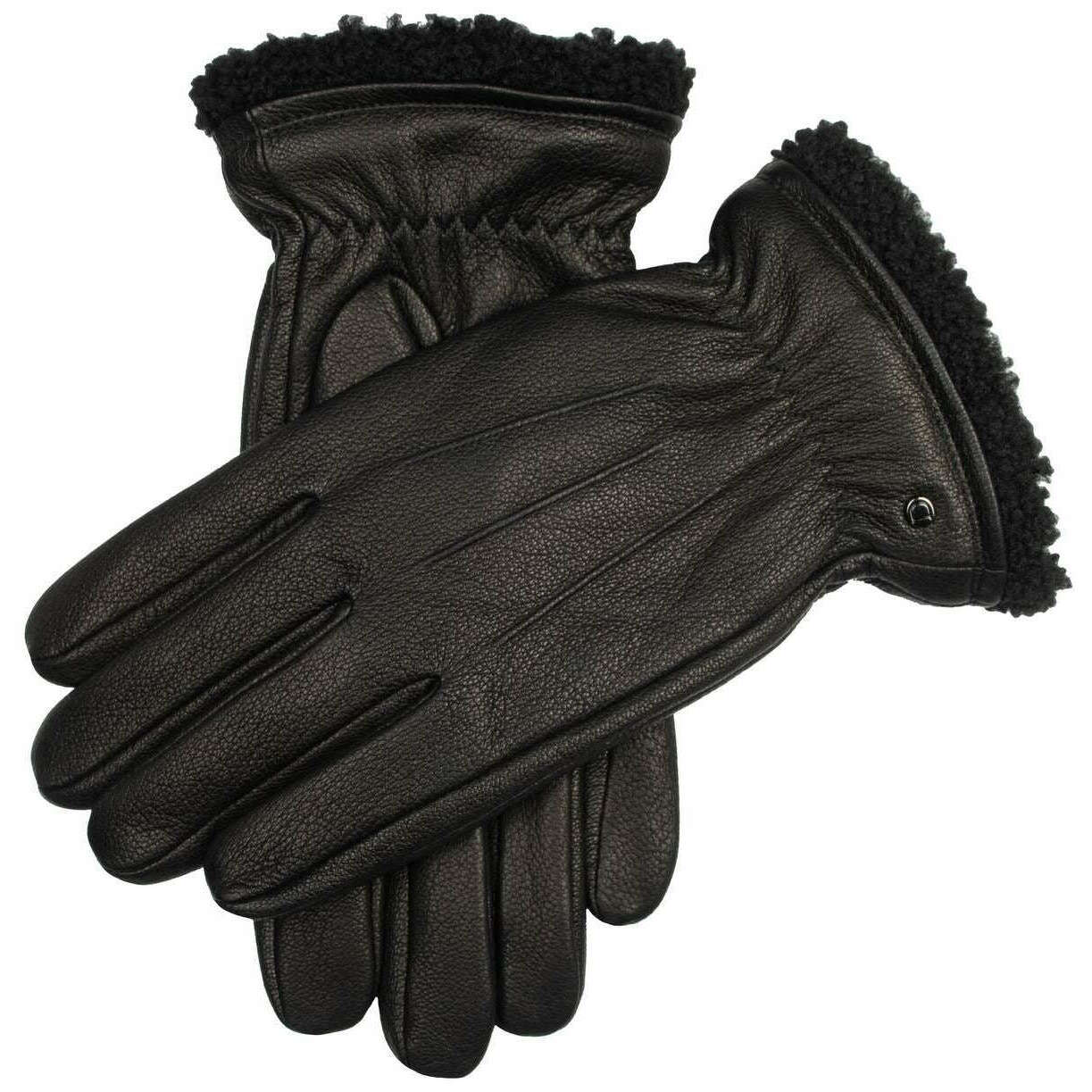 Dents Shrewsbury fleece gevoerde leren handschoenen - zwart