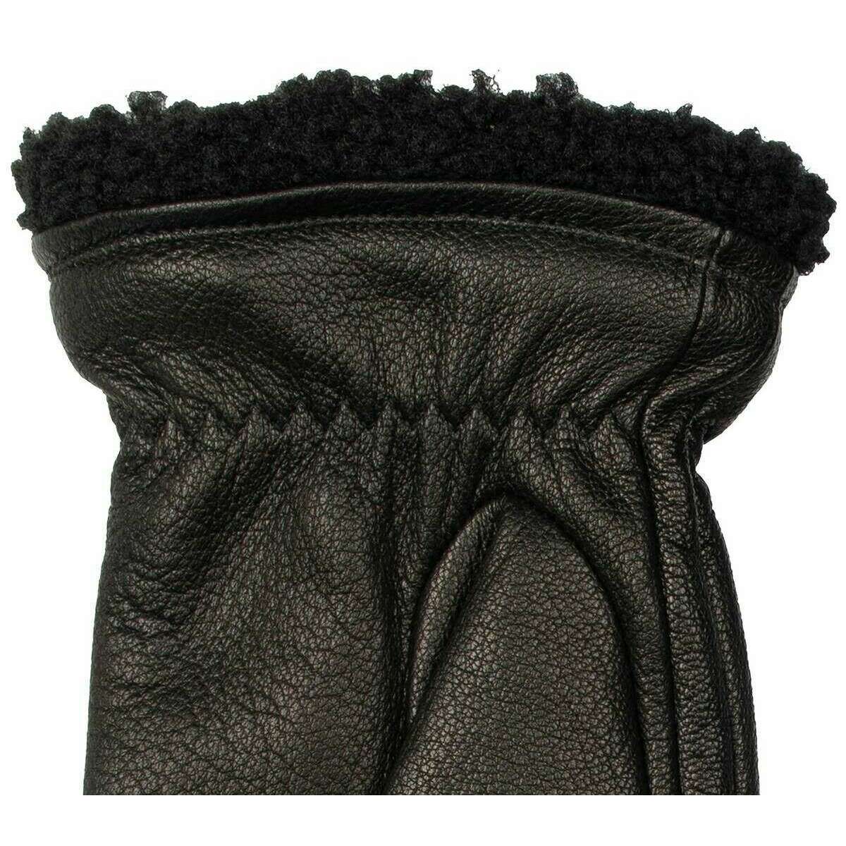 Deze zwarte Shrewsbury fleece gevoerde leren herenhandschoenen voor heren, aangeboden door het merk Dents, zijn gemaakt van buitenkant: hertenprint haarschapenleer, voering: 100% polyesterfleece. Ook de zwarte handschoenen zijn ontworpen in een effen patroon. Alle handschoenen worden compleet geleverd met deuklabels. De Dents Shrewsbury Fleece Gevoerde Leren Handschoenen - Zwart maken gegarandeerd indruk dankzij het prachtige materiaalgebruik en het fijne design. Gevoerd met prachtig verwarmend fleece dat uitsteekt tot aan de manchet om de pure luxe van dit paar te overdrijven. U kunt er zeker van zijn dat uw hand van binnen heerlijk warm zal zijn, waardoor de winter en de kou toch niet zo erg zullen zijn. Op de achterkant zijn drie machinaal genaaide punten te zien, aangevuld met decoratieve stiksels om af te werken. Een elastische pols geeft de drager bewegingsvrijheid en creëert tegelijkertijd een comfortabele en nauwsluitende pasvorm.