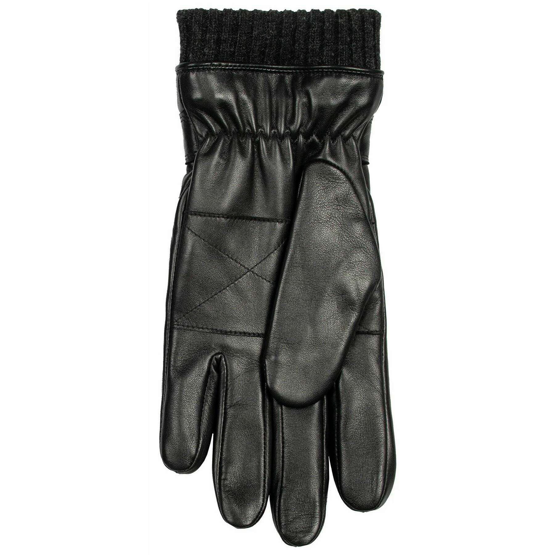 Dents Skipton gebreide lederen handschoenen met manchetsteekdetail - Zwart
