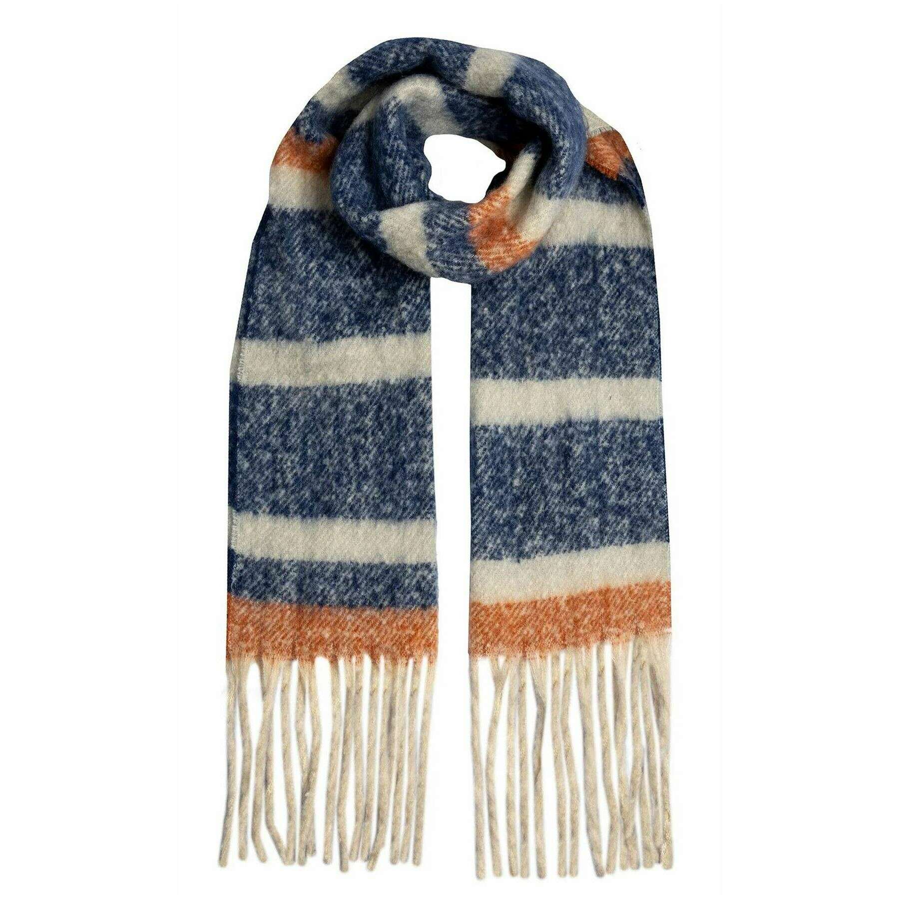 Dents Gestreepte Deken Sjaal - Marine/Pompoen Oranje