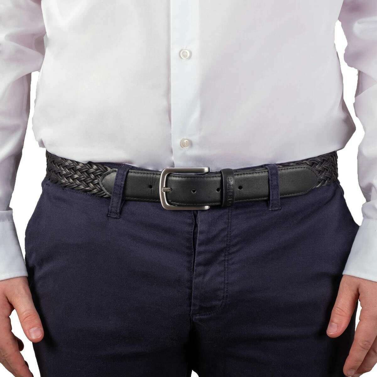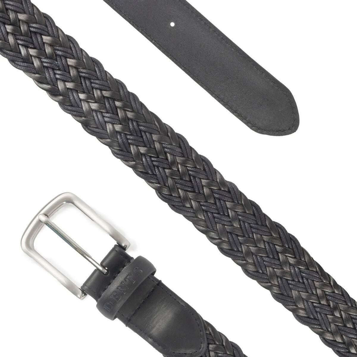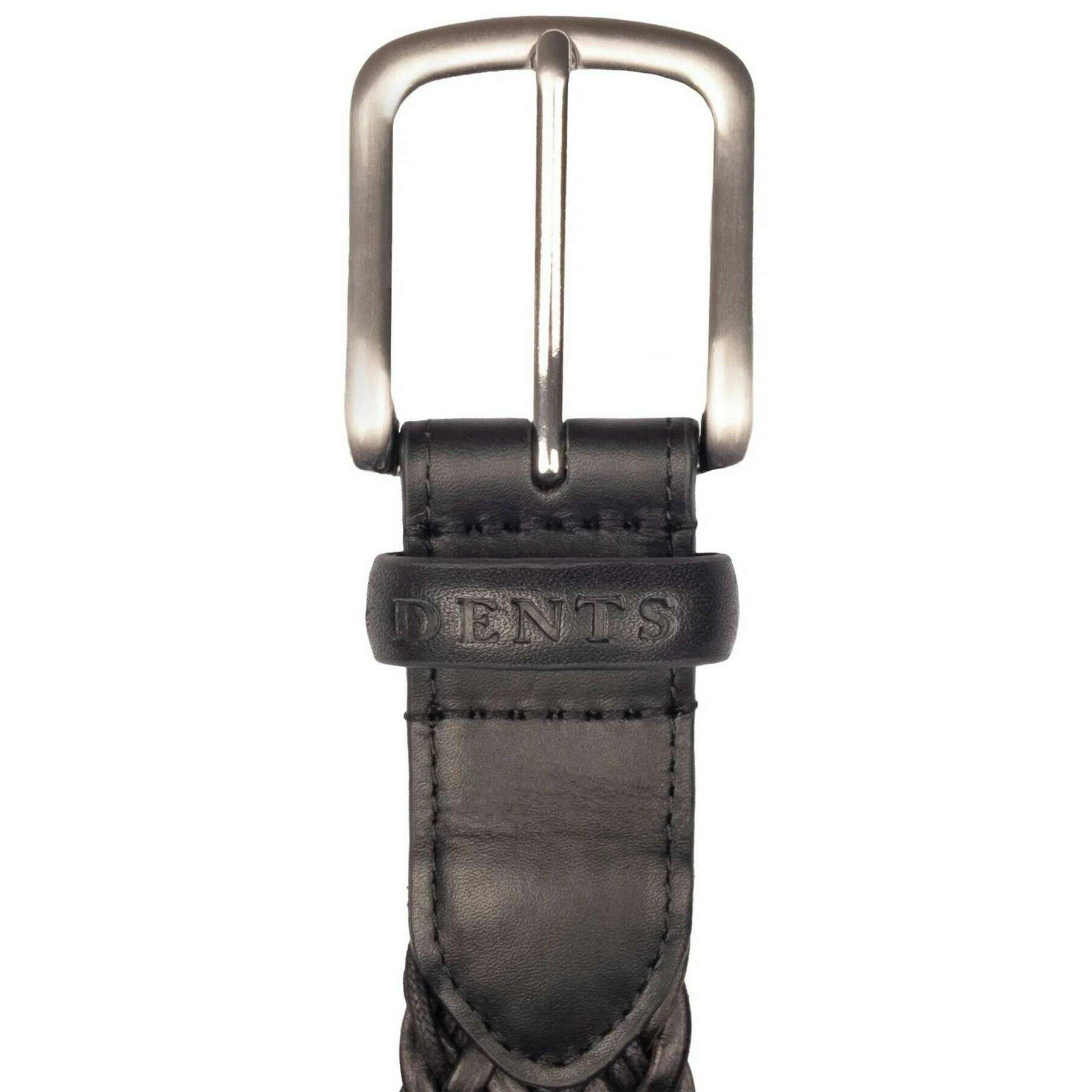 Deze goed gemaakte herenriem van geweven leer en katoen van Dents wordt geleverd in een zwarte kleur en is vervaardigd uit 100% leer. Alle riemen worden compleet geleverd met deuklabels. De Dents geweven leren en katoenen riem - Zwart is een ideale keuze als je een beetje stijlvolle flair aan je garderobe wilt toevoegen. De gevlochten structuur geeft het een prachtige totaallook die perfect bij je outfit past, zowel bij casual als formele gelegenheden. Deze riem heeft een enkele lederen houder, satijnnikkelkleurige fittingen en is ongevoerd.