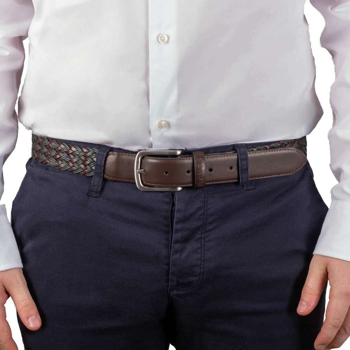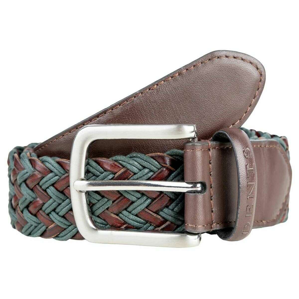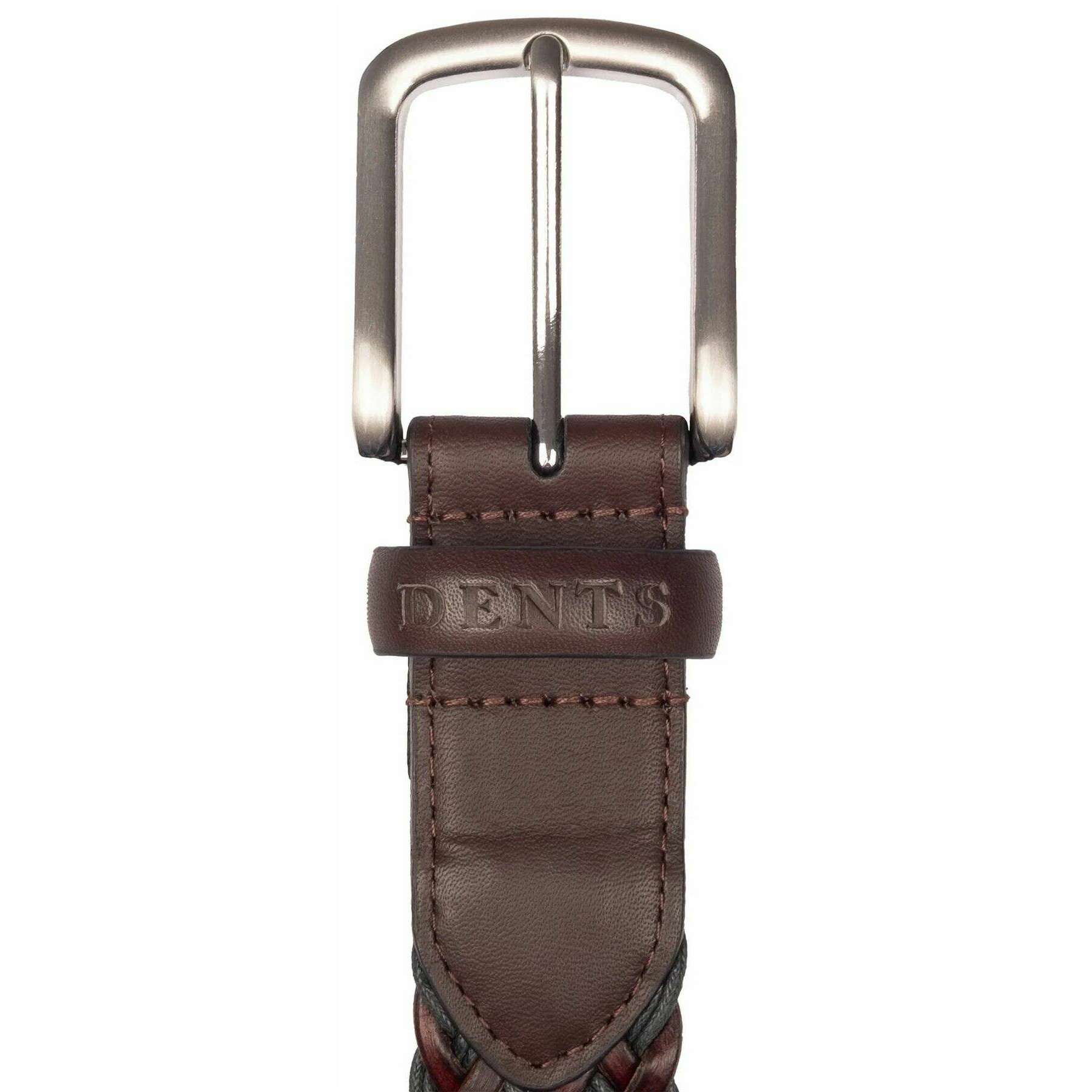 Deze goed gemaakte herenriem van geweven leer en katoen van Dents komt in een groene kleur en is vervaardigd uit 100% leer. Alle riemen worden compleet geleverd met deuklabels. De Dents geweven leren en katoenen riem - groen is de ideale keuze als je een beetje stijlvolle flair aan je garderobe wilt toevoegen. De gevlochten structuur geeft het een prachtige totaallook die perfect bij je outfit past, zowel bij casual als formele gelegenheden. Deze riem heeft een enkele lederen houder, satijnnikkelkleurige fittingen en is ongevoerd.