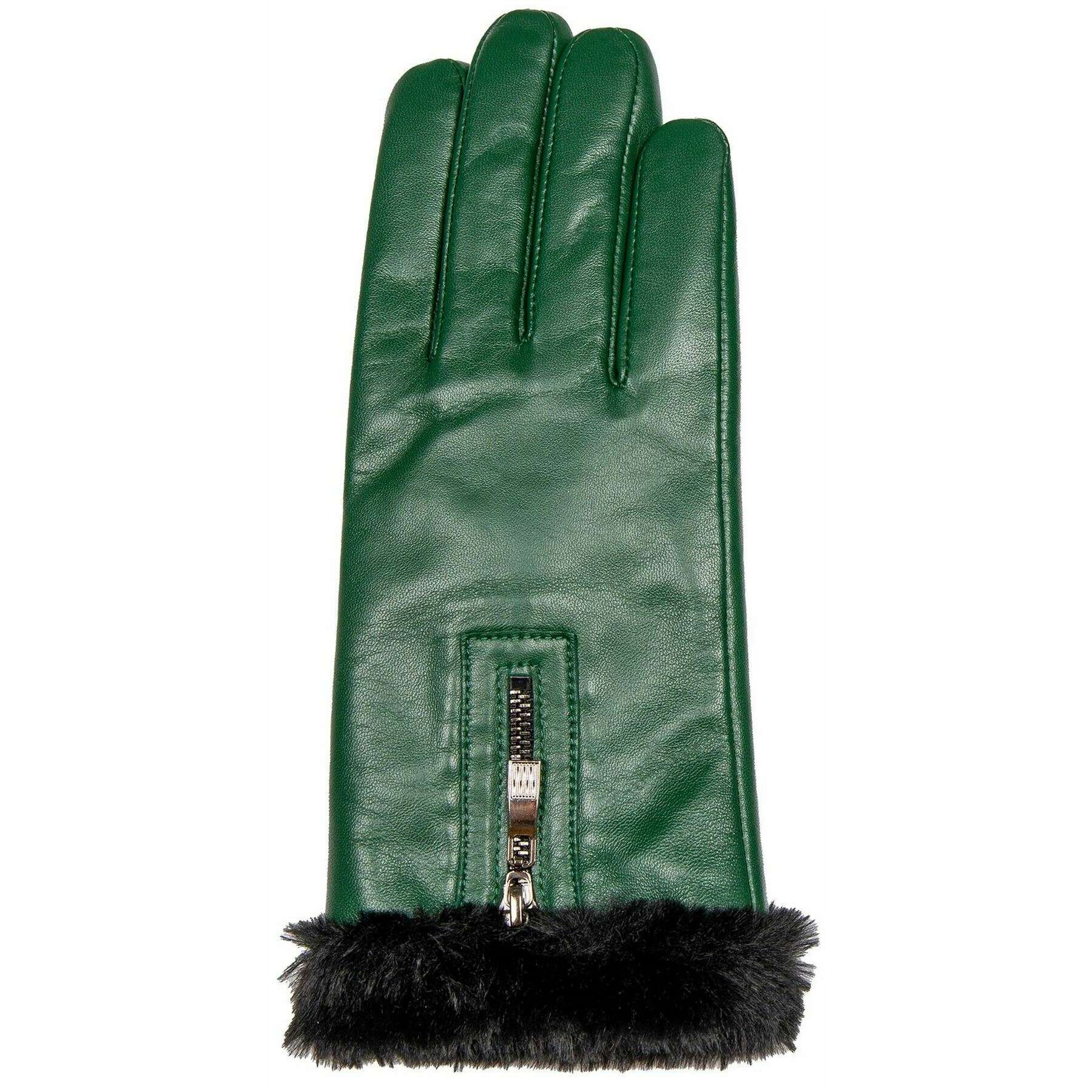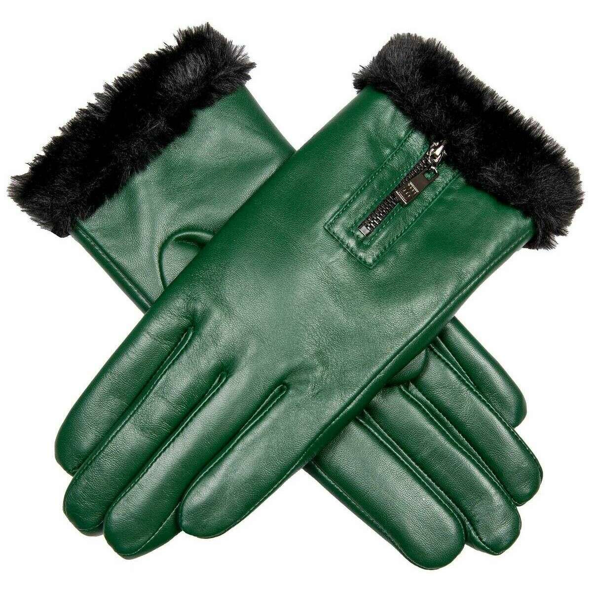 Deze Yasmin leren dameshandschoenen met manchetten van het merk Dents zijn gemaakt van 100% haarschaapsleer en een voering van polyester nepbont en zijn uitgevoerd in het groen. Ook de bosgroene handschoenen zijn ontworpen in een effen patroon. Alle handschoenen worden compleet geleverd met deuklabels. De Dents Yasmin leren handschoenen met manchetten - Forest Green zijn een modern paar met een decoratieve ritssluiting en zachte manchetten en voering van imitatiebont, waardoor je een stijlvolle look krijgt die zeker de aandacht trekt en tegelijkertijd je handen warm en supercomfortabel houdt. Ze zijn prachtig zacht en soepel en beschikken over touchscreen-technologie. Dit is de perfecte luxe set om toe te voegen aan je wintergarderobe.