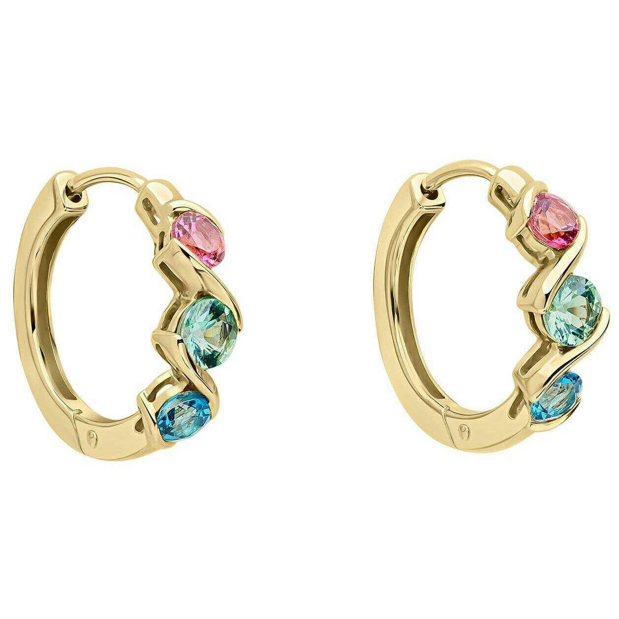 Elements Gold Amalfi driekleurige twist 9kt gouden oorbellen - groen/roze/blauw