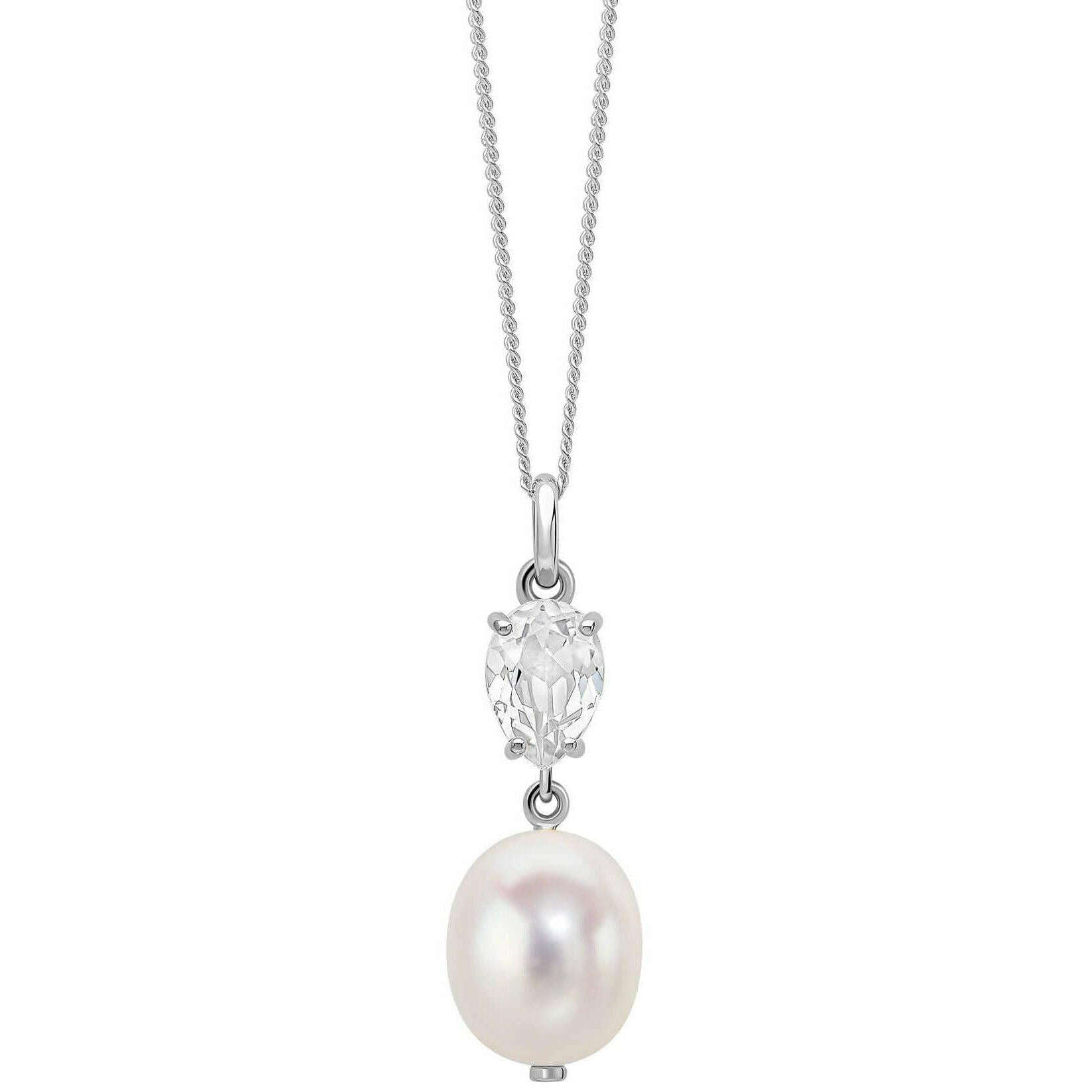 Elements Gold barokke parel en topaas 9kt gouden hanger - zilver/wit