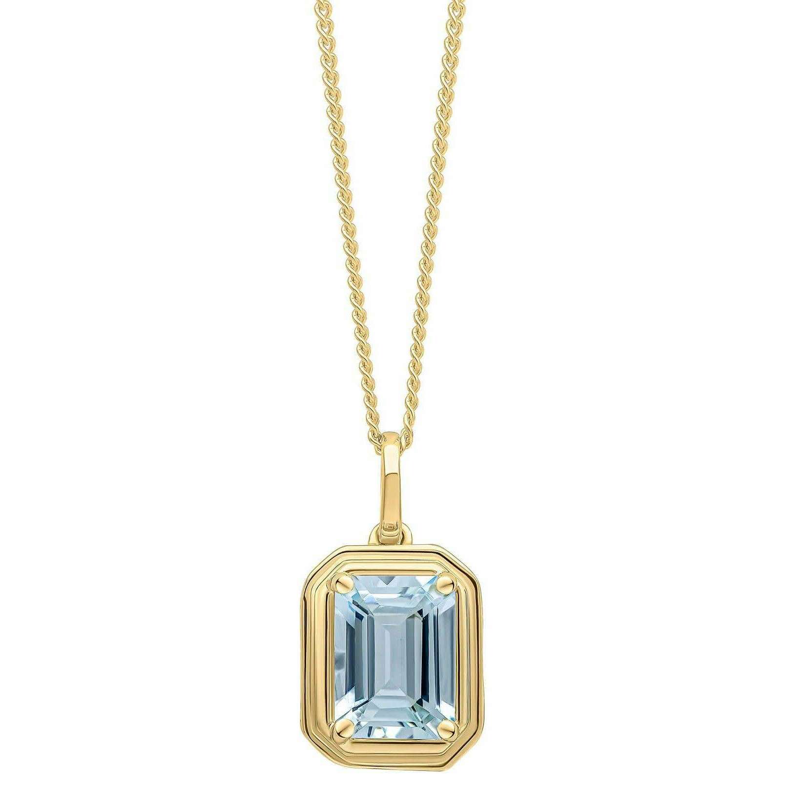 Elements Gold langwerpige Octagon Aquamarijn 9ct gouden hanger - goud/blauw