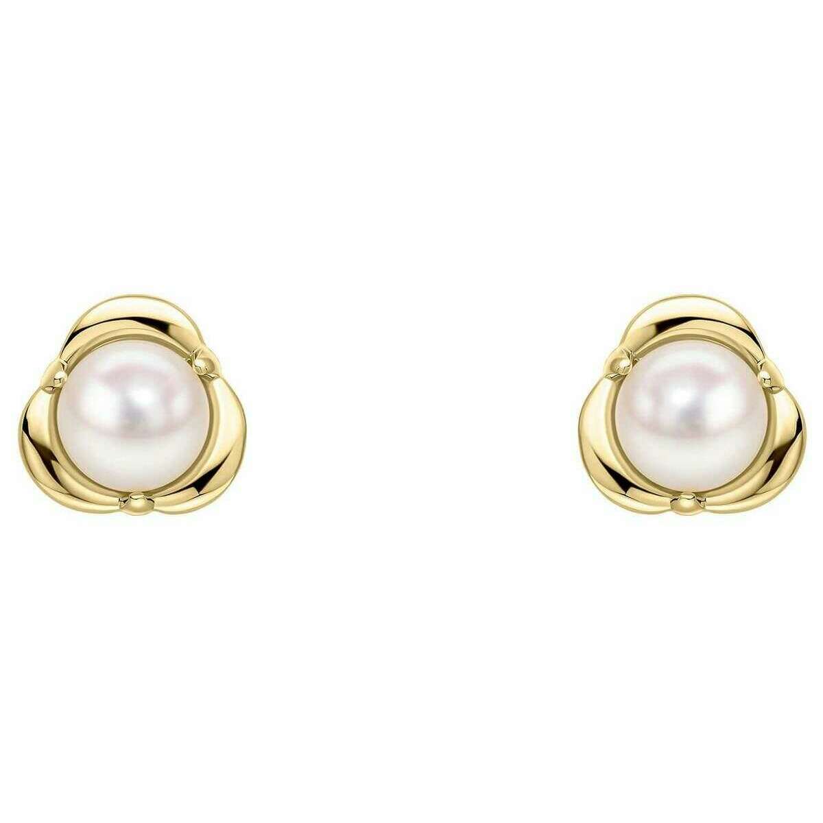 Elements Gold Petal Set Parel 9ct Gouden Oorbellen - Goud/Wit