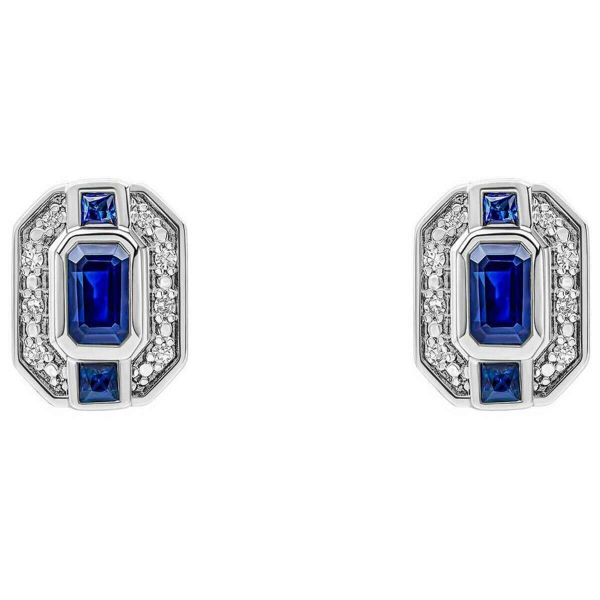 Elementen gouden saffierkanaal en diamanten oorbellen - blauw