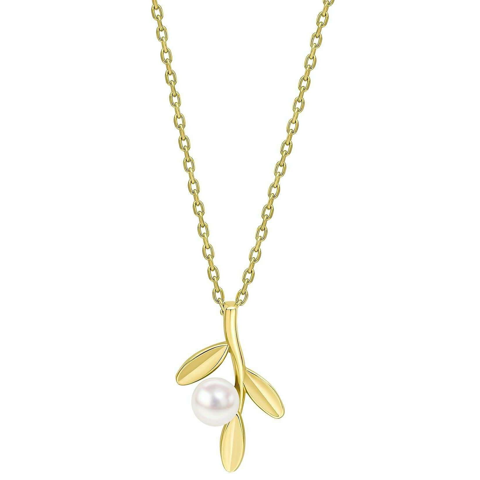 Elements Gold Willow Pearl 9ct gouden ketting - Goud/wit