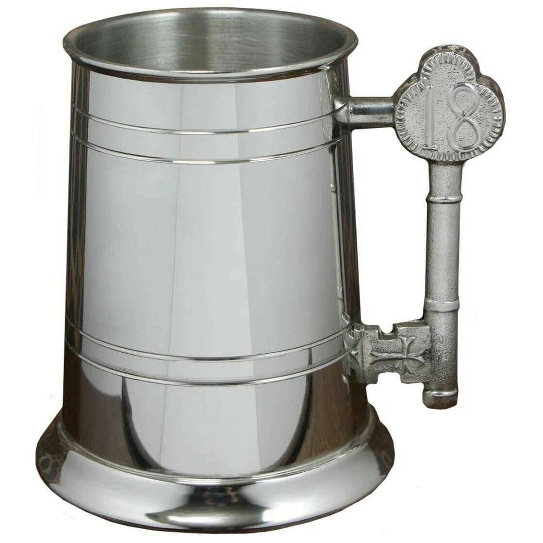 Engels tinnen bedrijf 1pt 18 Key Handle Tankard - Silver