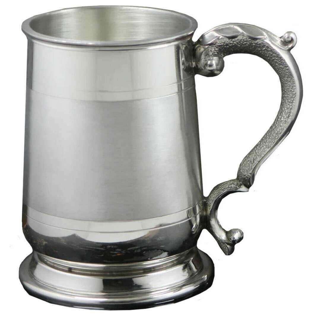 Engels tinnen bedrijf 1pt Cavalier Satin Band Tankard - Silver