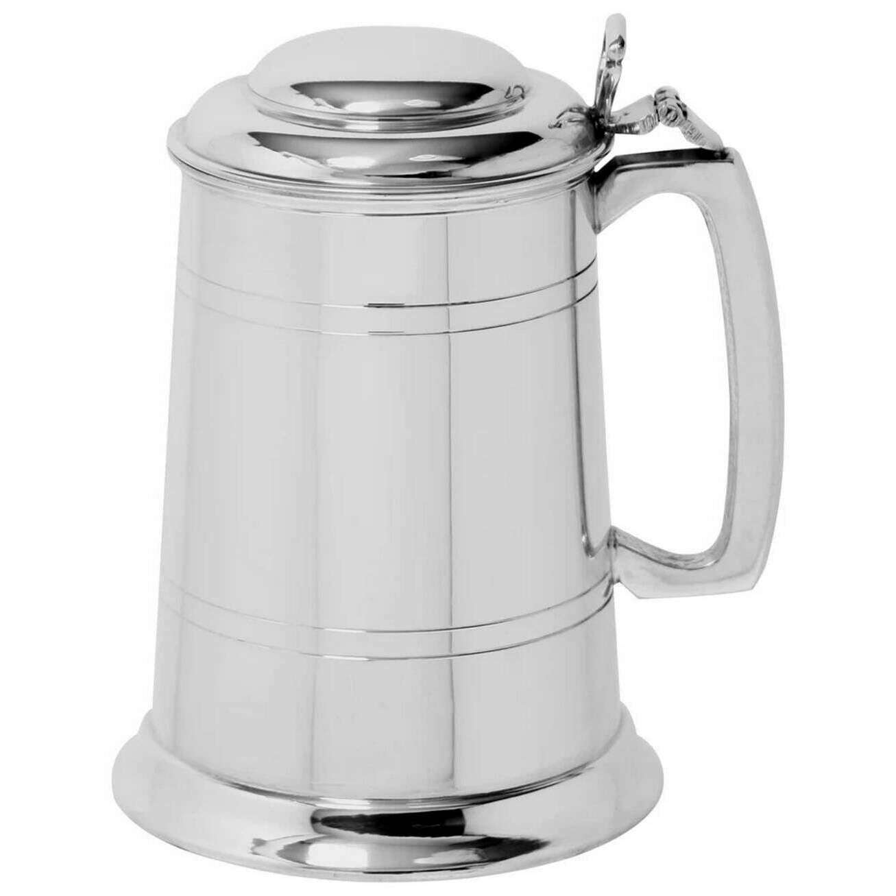 Engels tinnen bedrijf 1pt rechte deksel tankard - zilver