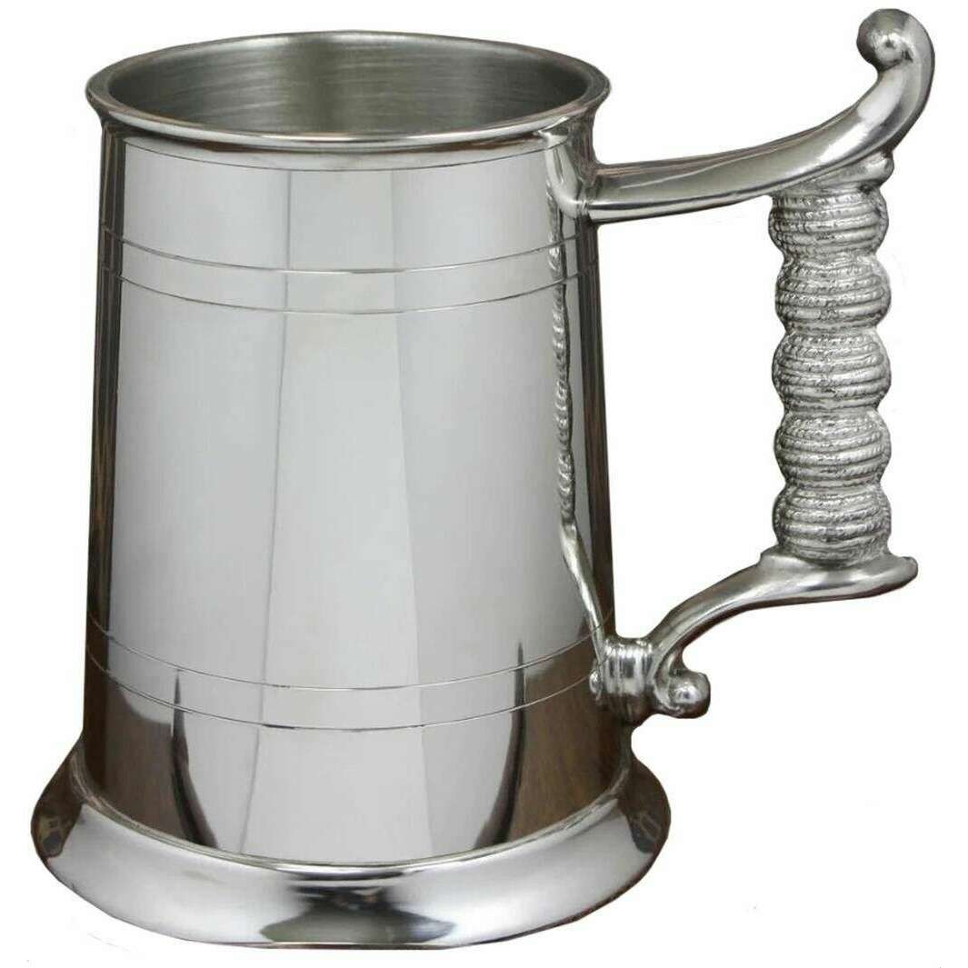 Engels tinbedrijf 1pt recht touwhendel tankard - zilver