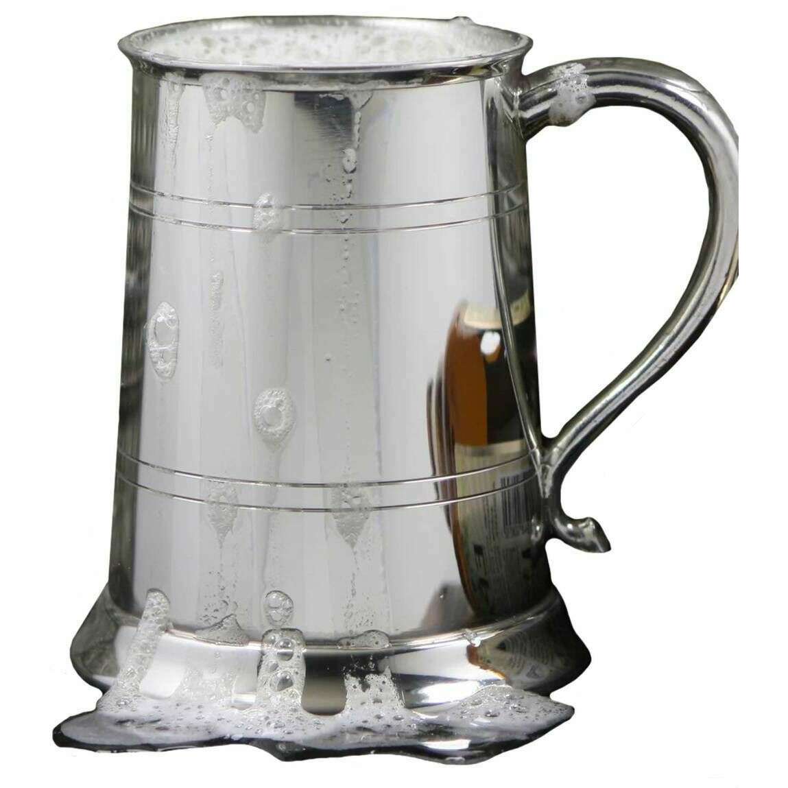 Engels tinnen bedrijf 1pt Swan Handle Tankard - Silver